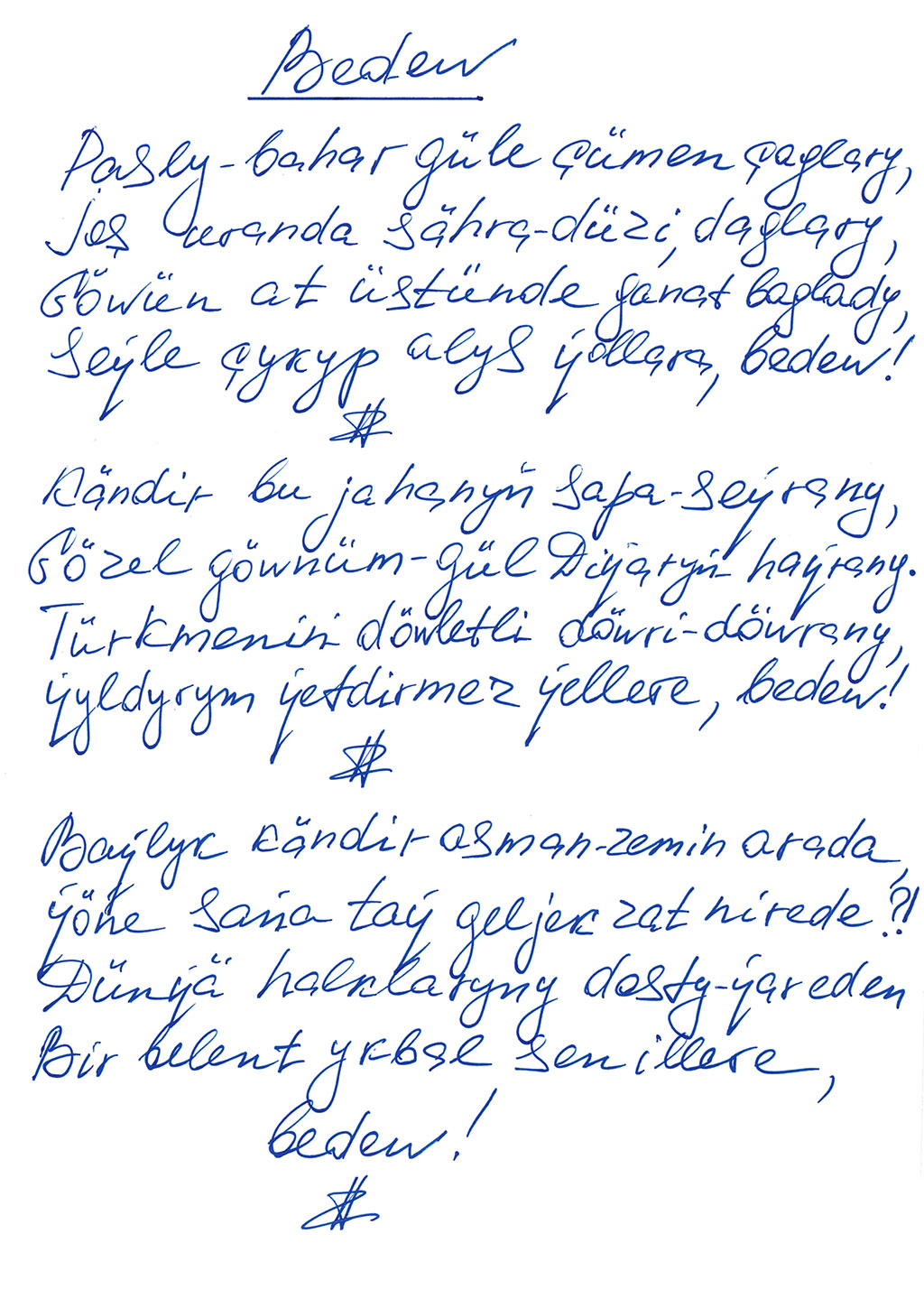 President Gurbanguly Berdimuhamedov went to Ahalteke Equestrian Complex where he visited the horses and following the traditional habit, went into literary creativity. It is generally known that in his works, the Head of the State gives important place to the history of the country including the events related to the Silk Road. Also, the President of Turkmenistan gives important role to large-scale sport events “Amul – Hazar 2018”. As it was mentioned above, special role in the works of the Head of the State is given to the Silk Road, which used to run across our country in the past, historical facilities, caravansaries, fortresses located along the route. This is visual evidence that Turkmen leader treats national values, which were made throughout the centuries by our glorious ancestors, with high respect. In his art, President Gurbanguly Berdimuhamedov also pays special importance to ahalteke horses. At present, large work for protection of the pedigree of these horses, improvement of their exterior and increment of the stock is carried out by the efforts of the Head of the State. Ahalteke horses are the symbol of our rapidly developing independent motherland. It opens new opportunities for deserving continuation of glorious path of ahalteke horses in the world equestrian sport and reveal of their abilities. By the initiative and under personal participation of President Gurbanguly Berdimuhamedov, Turkmenistan turned into the centre of various level events. Representatives of competent international organizations specialized in ahalteke horse breeding, famous experts and specialists of the branch come to the birthplace of famous horses to assimilate the experience of Turkmen professionals. Such events become more frequent when the country observes the Day of Turkmen Horse. Natural beauty and grace, dedicated temper, intellect and unique talents of this breed serve as the source of inspiration for poets and artists for ages. Having absorbed people’s love to the horses, Turkmen leader brought out the care of the improvement of the prestige and glory of ahalteke horses, development and propaganda of horse breeding art of our ancestors in the world to the level of the priority of the state policy. The President of Turkmenistan wrote such books as “Ahalteke Horse is Our Glory and Pride”, “Rapid Pace of the Horse”, which have been translated to many languages and are very popular among the specialists in equestrian sphere. Owing to the works of the Head of the State, which were published in different languages, it is not just the connoisseurs of ahalteke horses but wide reading community is able to familiarize with the features of this unique breed. Book of President Gurbanguly Berdimuhamedov “Rapid Pace of the Horse” won the main prize, the Grand Prix, of the 30th Moscow International Book Fair of International Contest of the CIS countries “The Art of Book”. Writing new books about ahalteke horses and national culture, Turkmen nature and the history of our nation, the President relies on historical evidence, various sources, facts from books that reached our days. The Head of the State notes that doing creative things gives huge esthetical pleasure and flood of inspiration to the man. Today, the President wrote the versus glorifying the spring, Turkmen nature and “heaven” horses. The Head of the State notes that ahalteke horses, which are national pride, glorious history of Turkmen people and spiritual values made by people, friendly relations to the nations of different countries of the world inspire artistic person to create new works. Scientific and literature works of the Head of the State sums up years of studies, considerations, historical information and literature traditions of the past. They contain deep knowledge of national traditions and huge layer of people’s wisdom that was reflected in folklore. Every new work of President Gurbanguly Berdimuhamedov has eternal importance in popularization of cultural heritage of the nations and in the improvement of the importance of the phenomenon of ahalteke breed. The Head of the State started writing new book dedicated to our traditions and customs, rich history, ahalteke horses and nature of Turkmen land. Undoubtedly, new work will be one of the favourite reading for all our people and the world reading audience and valuable source of knowledge about our country and Turkmen nation.