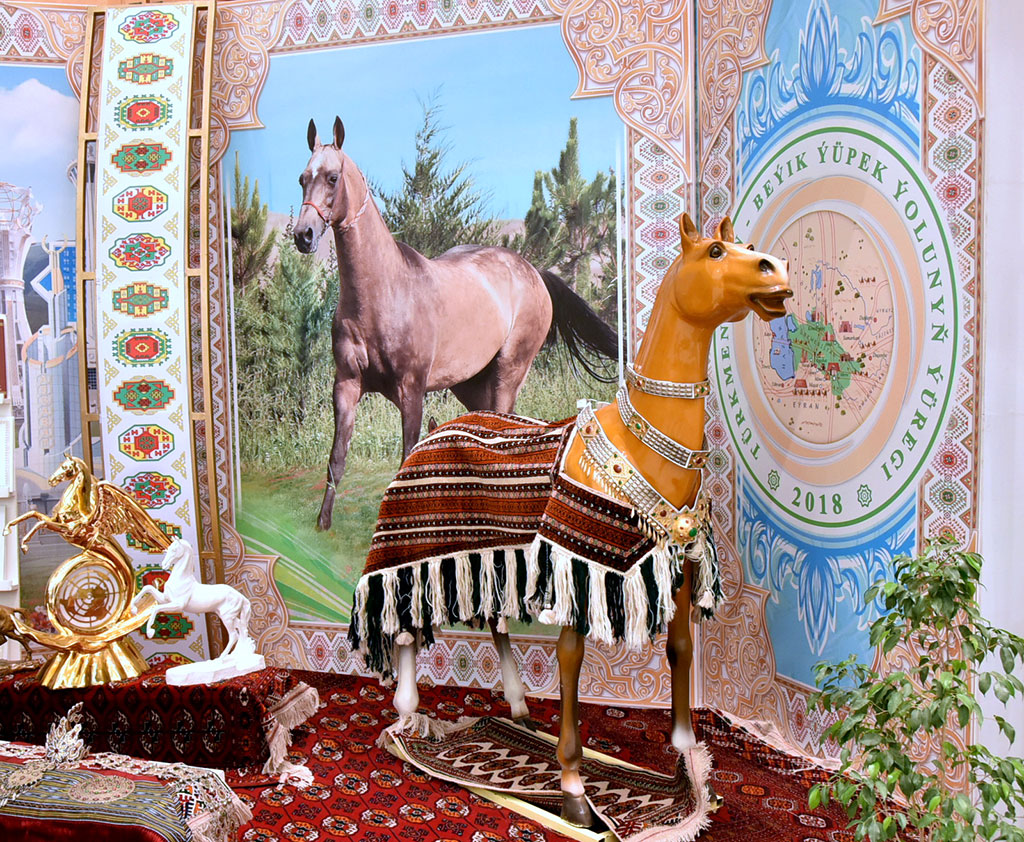 International exhibition Fair dedicated to the Day of Turkmen Horse annually observed on the last Sunday in April opened in Exhibition hall of the Trade and Industrial Chamber of Turkmenistan. The review that gathered representatives of dozens of countries of the world is aimed at further development of partnership, establishment of business and scientific contacts in equestrian industry, introduction of innovative technologies in breeding and training of the horses. The participants of the forum include the representatives from Russia, USA, China, France, Germany, Italy, Spain, Austria, Netherlands, Turkey, Iran, Pakistan, Argentina, Uruguay, Australia, Malaysia, Mongolia, Poland, Czech Republic, Azerbaijan, Belarus, Moldova, Ukraine, Kazakhstan, Estonia and other. Impressive composition of the participants of current specialized exhibition was another evidence of high prestige of this forum annually held by the Trade and Industrial Chamber together with Turkmen Atlary State Association. Representatives of equestrian industry, sports and tourism expressed keen interest to Turkmenistan as to the birthplace of the world famous ahalteke breed of horses and as to the country, which under the leadership pf President Gurbanguly Berdimuhamedov integrates actively to the world equestrian community cultivating thousand years old national traditions in combination with modern tendencies and technologies in this sphere. The members of the Government, leaders of the Mejlis, different ministries and departments, hyakims of the regions and Ashgabat, heads of diplomatic missions and international organizations accredited in Turkmenistan, representatives of non-governmental organizations, scientific and art intelligentsia, mass media took part in the opening ceremony of the Exhibition. The delegates of the VIII session of International Ahalteke equestrian Association and participants on X International Conference “ Turkmen Horse and the World Equestrian Art” were also among the guests. Ministries and departments, representatives of the velayats, large museums of the capital and local entrepreneurs opened their stands in the exhibition hall. Haigh rating of Ashgabat exposition was illustrated by the stands of foreign participants representing their national equestrian associations and clubs, specialized construction and profile companies, producers of equipment and hardware for equestrian industry, training and sport organizations, pet clinics, art and photo studios. The exhibition reflected all directions of equestrian industry – sport aspect, pedigree breeding, hippodrome business, horse breeding as well as the hardware for the horses like ammunition and outfit, forage and food additives, veterinary production. Horse breeders and jockeys are attracted by the stands with stabling equipment, special horse harnesses for different sports, furriery and smith production. Famous foreign companies demonstrated the expositions related to project design and provision of equestrian complexes, production and supply of specialized transport for horse, services in media support of equestrian events including live broadcasting of the races or long horse rides. Private jockey clubs and professional educational institutes training the personnel for this industry also presented their stands. There are «Herbacon GmbH» - German producer of food additives and natural medicines for horses, Indian «Sun Enterprises» producing horse outfits and harnesses, Belarusian “Beleka”, the supplier of veterinary production and many other among the exhibitors. Turkmen exposition attracted the attention of the participants with richness and originality – the hall even had oriental bazar of national crafts items. United thematic collection from the funds of large capital museums including beautiful ancient and modern works of national carpet and jewellery arts, artistic crafts as well as paintings and sculptures has been presented there. National companies were represented by bright expositions of the State Association Turkmen Atlary – the flagship in the development of the industry in all five velayats of the country and by National Institute of Sports and Tourism that trains the jockeys. Visual place was occupied by the stands of individual entrepreneurs specialized in carpet making and in jewellery. Picturesque canvas of Turkmen artists glorifying the image of ahalteke horse were excellent supplement to them. The exhibition allows the visitors imaging the perspectives opening for the development of equestrian sport and tourism in our country. The interest is also raised by printing production like booklets, brochures and other materials as well as video material about national equestrian celebrations, races and sport events. International Exhibition Fair will work until April 27. Its delegates will also participate in other events dedicated to the Day of Turkmen Horse.