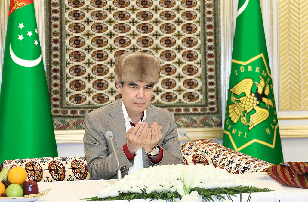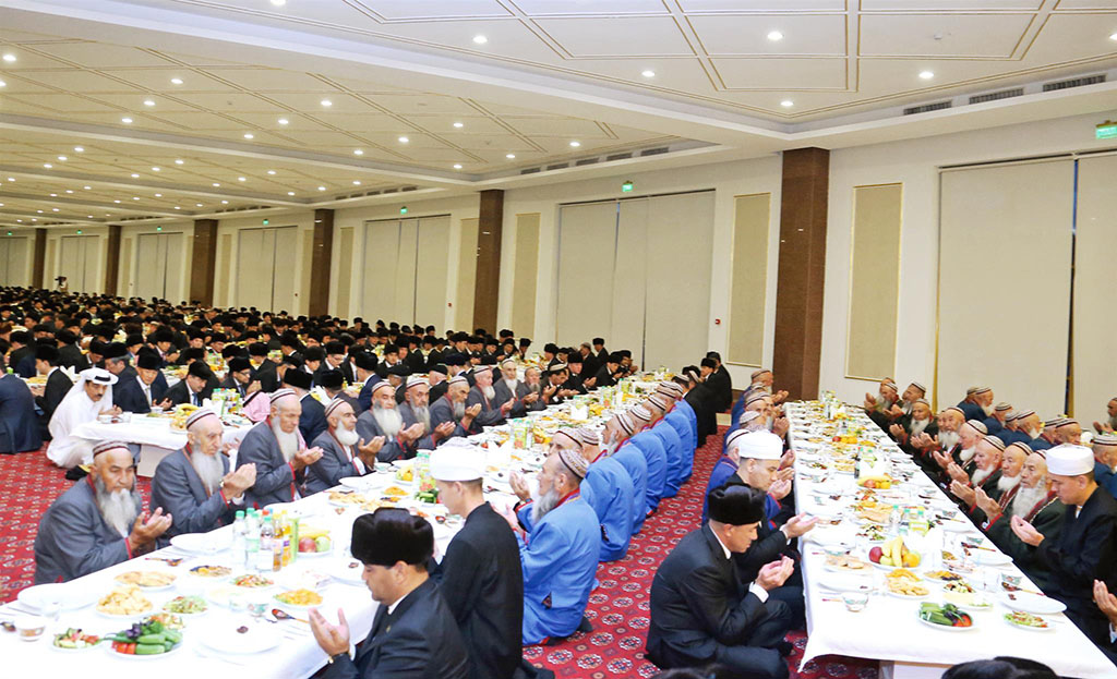On the occasion of the beginning of the holy month of Ramadan, the President of Turkmenistan, Gurbanguly Berdimuhamedov, hosted a sadaqah and iftar at the specially designated venue at the Halk Hakydasy Memorial Complex. Turkmens honor the month of Ramadan. Throughout centuries, on every day of this blessed month that appeals for goodness and mercy, our fellow citizens practiced proper observances and rituals, focused on physical and moral cleansing and spiritual renewal. In accordance with national customs and traditions, sadaqah and iftars are organized in towns and villages, prayers are conducted for healthy and happy life and prosperity of the country. The car of the head of state approaches the Halk Hakydasy Memorial Complex. President Gurbanguly Berdimuhamedov walks towards the building where the sadaqah is to be held. The head of state greeted the attendees and expressed his cordial congratulations on this wonderful holiday, stressing that this sadaqah and iftar on the occasion of the beginning of Ramadan that is, according to the great Turkmen poet and thinker, Magtymguly, is a month of blessed unity and cohesion, are highly symbolic as they coincide with the widely celebrated Day of Constitution and the State Flag of Turkmenistan. “Let the Almighty accept the prayers and sadaqahs! Kabul bolsun!” said the President and requested the mufti of Turkmenistan to pronounce the tabarak prayer. The mufti prayed to the Almighty for peace and stability on the Turkmen land, for unity of the people, for health and success of the head of state, asking to accept the sadaqah offered by the highly esteemed haji, President Gurbanguly Berdimuhamedov. Then the guests were offered various dishes of the national cuisine. Following the meal, the head of state requested the mufti of Turkmenistan to conduct a prayer to conclude the ceremony. President Gurbanguly Berdimuhamedov bid a warm farewell to the guests and left the venue.