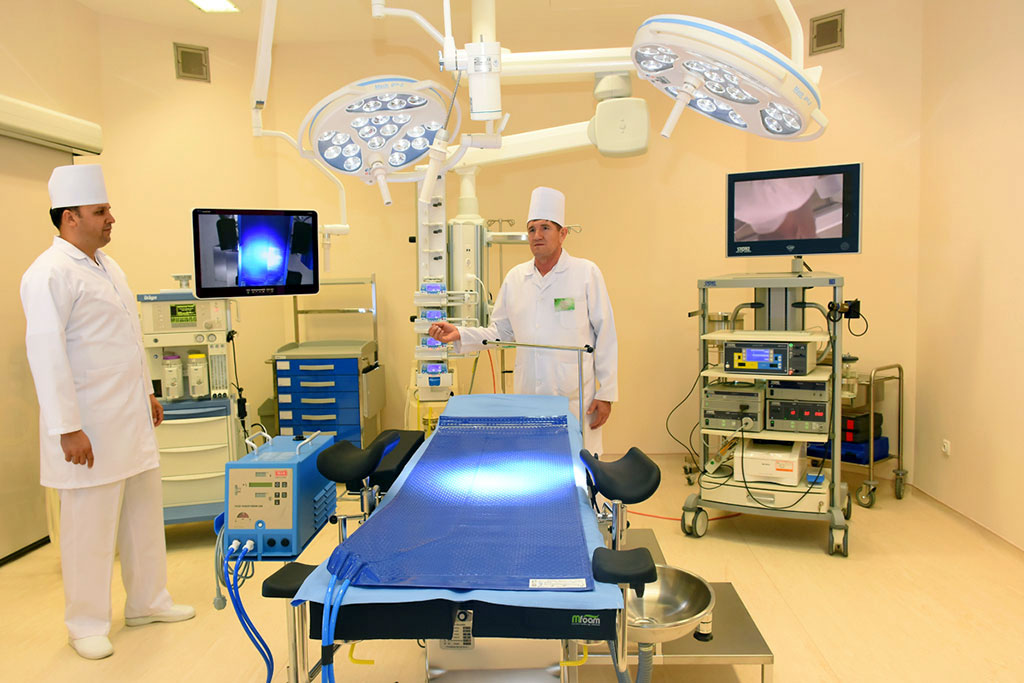 Four-storey children hospital started operating in Mary. It will serve little patients from entire Mary Velayat. The main purpose of medical centre, which has been opened prior the Day of Health Protection and Medical Industry Personnel, is to prevent and treat the diseases by innovative methods. The hospital has advanced equipment and entirely meets international standards. The structure if medical facility includes surgery, gastroenterology, neurology and rheumatic cardiology, reanimation and anaesthesia, diagnostics and consultation, radiology departments as well as reception, laboratory and blood bank. The patients will be received by the specialist of different profile including ophthalmologist, otolaryngologist, otolaryngologist, endocrinologist, cardiologist, traumatologist, orthopaedist, audiologist and other. It will have full spectrum of modern professional medical services for every child. Modern medical equipment is for the disposal of the specialists. In particular, consultative and diagnostic department has electroencephalograph, x-ray, videofibroronchoscope, fibrogastroscope, ECG and other latest equipment. Physiotherapy has the last generation devices for various methods of electro-, heat and light therapy (UHF, electrophoresis, quartz and other). Reception has also all conditions for emergency treatment of severely ill patients. The rooms have centralized oxygen supply system and electrical exhaust. In case of the necessity of artificial lung ventilation of the patient, the department has the devices from German «Drager». The monitors are used for precise control of arterial pressure, heartbeat, level of oxygen and carbon dioxide, body temperature of child. Availability of devices for accurate dozing of medicine allows injection of medicine according to their weight. The department has special premises for emergency surgery. It equipped with anaesthesia units, monitors, video cameras for enlarged view as well as other necessary equipment. It also has the room for isolation of the patient with infectious diseases, which also like the rest of them has all conditions for first medical care. Modern analysers from European companies «Siemens», «ELITE Tech Group», «Horiba ABX», «Thermo Fisher Scientific», «BioMerieux» detect the changes in the processes of metabolism of fats, carbohydrates, proteins and minerals. They analyse the readings of gland of internal secretion, hemostatic systems allowing to make the studies according to the world standards. The hospital has the department of early child development and rehabilitation, which is important direction in the development of paediatrics. The Head of the State set out such objectives to the hospital as detection and correction of deviations in development of children at early stage, methodological aid and psychological support of family that has a child with growth malfunctions, development of individual programmes, education and developing lessons for the patients with involvement of their parents in rehabilitation process, etc. It is remarkable that together with various treatment methods, it has the application of physiotherapy with use of medicinal plants. Every patient of the clinics can enjoy healing drinks, cocktails and tea, herbal broth. The hospital is provided with diagnostic and medical equipment and instruments made according to children theme. Single and double rooms have comfort conditions. It also has central nursery station.