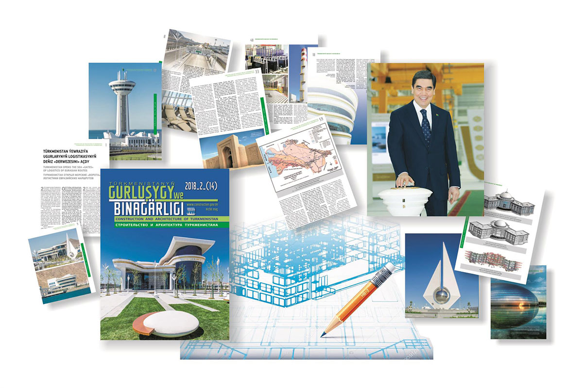Regular issue of magazine “Construction and Architecture of Turkmenistan” presents the review of the key events in construction of large facilities in our country, realization of big infrastructural projects reflecting innovative engineering solutions and new technologies and speaks of the developments of national scientists on provision of seismic safety, invention of innovative construction materials and tendencies of the world development of the industry. President Gurbanguly Berdimuhamedov orients architectural and construction complex to the development of the advanced world practice and creative thinking of the traditions of national architecture as the appearance of our cities and villages has to reflect social and economic progress of the country and creative and intellectual potential of the nation on one hand and from another hand to bear unique features of Turkmen culture and its richest heritage. Articles of the magazine published in Turkmen, English and Russian languages by the Ministry of Construction and Architecture speaks of its practical application starting from the idea until putting of new buildings and other facilities to operation. Involvement of specialists of different structures of the department and relative branches to the author team gives business tone and professional character to the magazine. Competent approach became the guarantee of the authority of the magazine, however every publication is built in the way to interest the widest reading audience. Excellent design, owing to which the issue received its own style and became well recognized among numerous medias of the country, is worth special mentioning. New issue is opened with the article about one of new releases of this year. This is about Turkmenbashy International Seaport, which was opened in May with the participation of President Gurbanguly Berdimuhamedov. This strategic project opens new prospects of trade and economic collaboration for all countries of Central Asia and Caspian basin supporting their active integration to the world economy and improvement of the role of Turkmenistan as an important centre of transit communications. Architectural component of this colossal project and numerous technical innovations that were applied in the organization of the port activity and its space are worth special mentioning. Its part with passenger terminal looks like nice and respectable city shining with tinted glass and golden decoration with original construction on the mountains; background. From another side, industrial landscape with powerful console constructions of the loaders is opened from the sea side. High dispatch tower resembles huge anchor while administration and service buildings look like snow-white cruise liners and yachts in harbour. All of these is cut by automobile and rail roads belting the port. This is how multimodal logistic hub, which meets high technological level by modern stylish image and ecological status, looks like. Environmental protection principle is laid by Head of the State Gurbanguly Berdimuhamedov to the basis of all industrial, transport, urban construction projects in Turkmenistan. Green status of new seaport of our country is proven by artificial bird island, which was marked by international awards. Turkmenbashy harbour is another invitation to Avaza National tourist zone, which is turning these days into large international tourist centre. The Head of the State defined the compliance of all facilities built in the coastal zone to the environmental safety requirements as one of the main terms of development. The issue is continued by the article about the activity of the Scientific and Research Institute of Seismic Construction. The reader will learn the objectives of the laboratory of the Institute, the tests thy make and how and where the developments, instructions and rules are implemented in practice. The policy of provision of wealthy and happy life of Turkmen people, formation of necessary infrastructure in the cities and villages, which meets international standards, is under «Täze zaman» article. Numerous construction, especially comfortable living houses, which are built recently by the complexes, are bright symbols of successful realization of this streategy of the Head of Turkmenistan. This is visually indicated by living estate «Täze zaman» in Bagtiyarlyk etrap of the capital. Its construction was made by stages increasing the number of families who received new living. In addition to one thousand of two and one-storey houses with land plots, it has the hospital and cultural club, schools, kindergartens, sport complex, shopping centre and shops, as well as modern road and transport network. Such model of living estates that was successfully tested and implemented by President Gurbanguly Berdimuhamedov allowed to keep up with traditional customs of Turkmen nation’s living where people has auxiliary constructions, small garden, open air stove next to the house. It also leads to the removal of the borders in the living in urban and rural environment when high technologies come to the village and opportunity to live in the house with big family come to the city. The magazine has an article on the achievements in road construction and current work of the State Concern «Türkmenawtoýollary» for building of new and reconstruction of existing roads, formation of transport and transit corridors and future plans. It includes the construction of Turkmenabat – Gazojak – Dashoguz highway (2021 – 2031), Turkmenbashy – Garabogaz – Kazakhstan highway (2018 – 2028) and Mary – Serhetabat road (2021 – 2025). The subject of road infrastructure received historical direction in article “Caravansaries along the Great Silk Road”. The author refers to scientific and literature sources including the book of the Head of the State “Turkmenistan – the Heart of the Great Silk Road” giving interesting description of the role and arrange