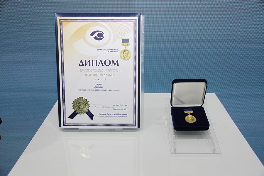 The highlight of the ceremony was the presentation of the Gold Medal named after V.I. Blinnikov of the Eurasian Patent Organisation to the city of Arkadag by the President of the Eurasian Patent Organisation, G. Ivliyev. The award was accepted by D. Orazov, chairman of the State committee for construction of the city of Arkadag under the President of Turkmenistan.