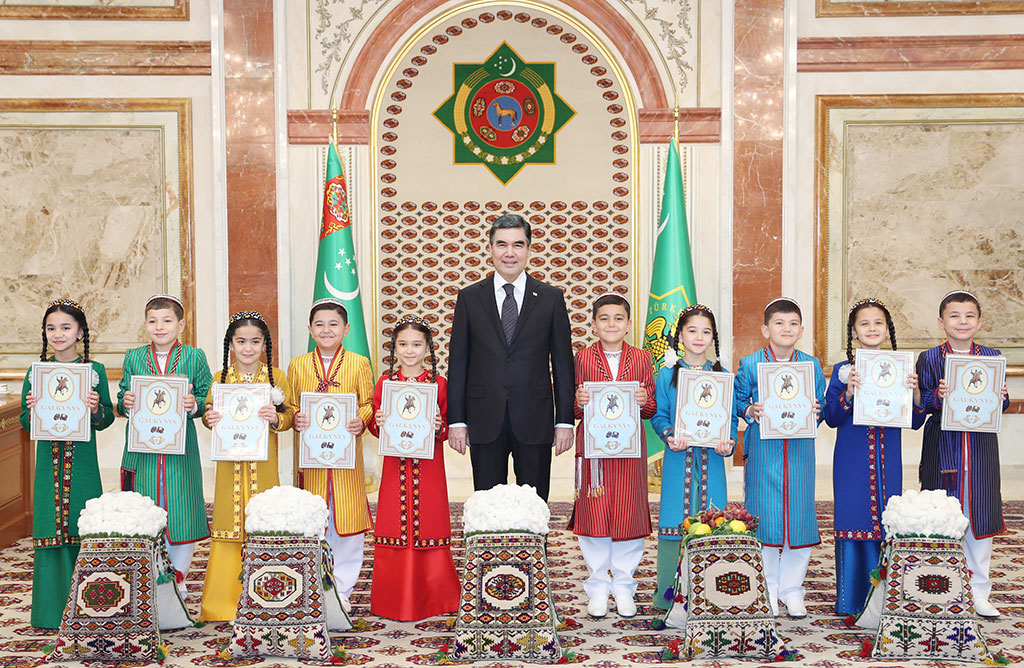 President Gurbanguly Berdimuhamedov heard reports by the governors of Ahal, Dashoguz, Lebap and Mary provinces on the successful fulfillment by land tenants of their contractual obligations for the production of raw cotton. The head of state also received a report by the governor of Balkan province on the delivery of the planned volumes of fruits and vegetables. On behalf of rural workers, the senior officials of the regions congratulated the head of state on the labor victory of Turkmen farmers. The attendees stressed that fundamental transformations were successfully being carried out in our country. Much attention is devoted to the modernization and diversification of the agricultural sector of the national economy; the improvement of the mechanisms of economic incentive in farming; the forming of modern economic relations in rural areas; and the development of various forms of ownership. The sector is undergoing a technical upgrade with introduction of advanced technology. Modern processing facilities, major flour mills, breeding, poultry and greenhouse complexes were built in every province. Thanks to the comprehensive government support, volumes of agricultural production in demand both on the domestic and foreign markets are systematically increased. As part of the implementation of government programs, primarily the National Program for Improving Social and Living Conditions in Villages, Settlements, Towns and Administrative Centers, every region of the country changed beyond recognition. Comfortable housing, perfectly equipped schools, kindergartens, medical and cultural centers, sporting facilities, modern villages with exemplary infrastructure are being built in the provinces, thus improving the well-being of the people. Farmers submitted to the government over 1 million 50 thousand tons of “white gold”. Having honorably fulfilled the obligations, land tenants continue working at full tilt to collect every cotton boll of the remaining harvest. Then the children, the young envoys of provinces, carrying sacks full of snow-white cotton, congratulated the Turkmen leader on this tremendous labor victory achieved by the masters of “white gold”. The head of state thanked the children for their congratulations and wishes and handed them gifts. At their request, President Gurbanguly Berdimuhamedov had his photo taken with the children. Then the Deputy Chairman of the Cabinet of Ministers, E.Orazgeldiyev, took the floor to report that the tenant cotton farmers submitted to the State over 1 million 50 thousand tons of “white gold” and thus have fulfilled the government procurement plan. The Vice Premier congratulated the President of Turkmenistan on the success of rural workers and stressed that the reforms in agriculture had borne fruit. Then the Chair of the National Parliament of Turkmenistan, the Deputy Chairmen of the Cabinet of Ministers, the heads of military and law enforcement authorities of the country, the governors of provinces and the mayor of Ashgabat expressed to the head of state their congratulation on the successful fulfillment by the country’s cotton farmers of contractual obligations. On behalf of Turkmen farmers and all residents of the provinces, the attendees conveyed to the President of Turkmenistan their heartiest gratitude for his concern for the development of agriculture and care for the hard-working laborers, and expressed their wishes for long life, immense energy and new outstanding achievements in his tireless work. President Gurbanguly Berdimuhamedov addressed the attendees and noted that the masters of “white gold” would celebrate the Harvest Festival with a tremendous labor victory. Having submitted over 1 million 50 thousand tons of high-quality cotton, they honorably fulfilled their contractual obligations. In this regard, the head of state thanked the country’s cotton farmers and all agricultural workers for their dedicated work and achieved milestones. During the years of independence, along with other branches of the economy, agriculture has been rapidly developing. Reforms in this field show positive results, said the President and noted that the State created all conditions for the highly productive work of farmers, who are afforded advanced machinery, fertilizers, water and other necessary resources. President Gurbanguly Berdimuhamedov reiterated his congratulations to the cotton farmers and all agricultural workers on their labor victory and wished them good health, family well-being, happiness and every success.