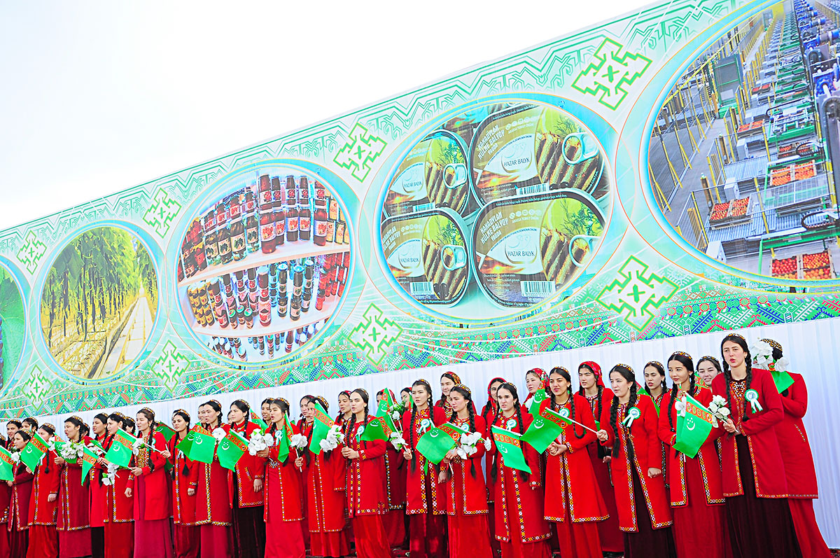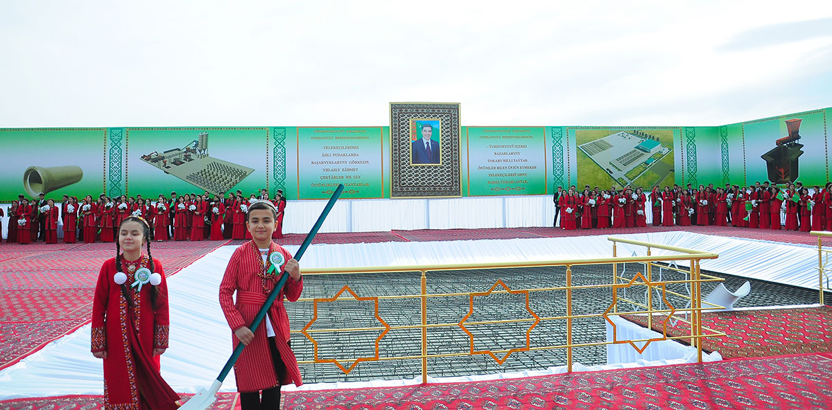 Foundation stone laying ceremony of two private facilities – the agricultural complex and Ferro concrete production plant, was held in Gyoktepe etrap. It was highlighted at the event with the participation of Deputy Hyakim of Ahal velayat Serdar Berdimuhamedov as well as deputies of National Parliament, representatives of etrap adminstrations, departments and organizations of the region, members of the Union of Industrialists and Entrepreneurs of Turkmenistan, elders, youth and public figures that provision of food abundance in the country is one of the priorities of social and economic policy. Significant success has been achieve due to integrated measures aimed to rapid development of agricultural processing sector and food industry as well as comprehensive government support of local producers. Big mill facilities, livestock, poultry and hothouse complexes have been built in every region of the country. The work of the facilities is based on advanced practice and modern technologies. Dozens of facilities making wide variety of food production have been built. Representative of private sector of the economy, wo successfully implement major investment projects in the above-mentioned branches, take an active part in this large-scale work. This is indicated by current laying of foundation stone of agro industrial complex, which will be built by Sowuk Göz private company on the area of 220 hectares. In future, the facility will cultivate and process various agricultural production for sale in local and foreign markets. It will also produce fish and meat products as well as unique Turkmen wide, which is famous around the world. One of the facilities of the complex is designated for production of 360,000 tons of beef and lamb meat per year. Production of high quality beef and lamb will allow arranging export of these meat products. Indoor farm for breeding and processing of fish will have advanced equipment. Project production capacity of the facility is 240 tons of different fish. The structure of the farm will have the workshops for full cycle of fish breeding, chopping workshop from where the production will go to further processing, smoking workshop and other. Facilities of the complex include the winery, which output capacity is designated for processing of 15,000 tons of grapes per year. It is worth mentioning that various grapes are planned to be cultivated on the land plot of 520 hectares, which belongs to Sowuk Göz private company in Gyokdepe etrap. As is known, Turkmen winemakers give preference to Terbash and Garauzym grape varieties, which recommended well itself. Opening of new facility for production of vintage wine with expansion of variety of production will support further development of viniculture in the region. It also has refrigerator facility provided with freeze chambers designated for storage of 38,000 tons of production, which is planned to be sold in local and foreign markets during the year in proper presentation. Modern systems of storage and management of trade flows allow efficient provision of of facilities and shopping complexes of the capital and Ahal Velayat with various production. Improvement of level of logistic services in important region for the economy of the country will support the growth of trade volumes and the variety of goods in the shops, reduction of expenses for transportation and storage. Next facility of the complex is the canned production workshop oriented to processing of own fruits and vegetables where production of different jams, juices, frozen fruits, melons, watermelons and marinades It will have a laboratory for analysis of quality of fruits and vegetables, which further will be packed in special container and sent for sale. It is worth mentioning that the complex will also produce plastic and carton packaging for production. It is also planned to build four modern hothouses on the territory of 170 hectares. Special equipment will support optimum temperature and light mode, level of humidity and fertilization of the soil. It is planned to grow lemons on 20 hectares, tomatoes on 70 hectares, cucumbers on 10 hectares while 20 hectares will be allocated for vegetables and cucurbitaceous crops. In addition, 10 hectares will be used for cultivation of seeds and seedlings for hothouses and open lands. It is planned to enter to the agreements with farmers and entrepreneurs, which received land plots from special agricultural land fund, for comprehensive involvement of all capacities of agricultural complex. According to the agreements, they will receive seeds and fertilizers and sell produced harvest. It is also planned to build veterinary and medical service facilities as well as laboratory centre and bank branch of the territory of the complex. It will also have shopping centre and car parking for 500 vehicles. Further, the foundation stone laying ceremony of the Ferro concrete plant with annual production output of 500,000 meters of concrete pipes of 300 to 1200 mm diameter took place. High technological equipment, which is planned to install at the facility, will allow making production based on environmentally friendly technologies. Current events have turned into bright celebration, which atmosphere was highlighted by performance of artistic collectives.