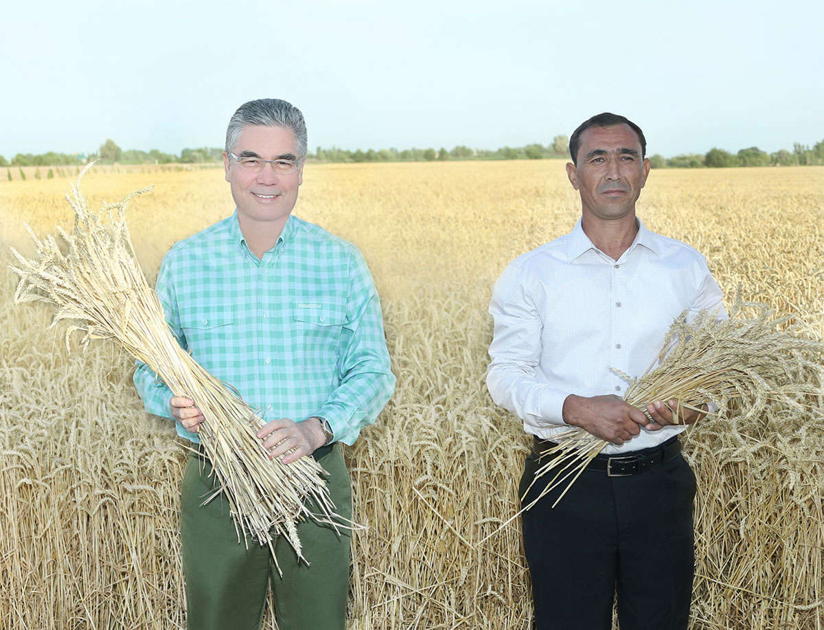 President Gurbanguly Berdimuhamedov, who is currently on working trip in Dashoguz Velayat, inspected the works at the agricultural fields of the region. In the morning, Turkmen leader went to the fields under crops of Bossan Farmign Association, S. A. Niyazov etrap. The vehicle of the Head of the State has stopped at the field of grain producer Amanyaz Berdiyev. Upon arrival, the President was met by the Speaker of the Mejlis, Deputy Chairmen of the Cabinet of Ministers, heads of military and law enforcement agency, ministries and departments of the country, mass media and Hyakim of Dashoguz Velayat. The Head of the State, who pays special attention to the development of agriculture, making of all conditions for prosperous life of rural population together with other branches of the economy, has noted importance of improvement of work in this direction, having focused that these subjects have to be under permanent control. In the field, the Head of the State expressed in interest in yield produced by grain grower A. Berdiyev and opportunities made for the farmers. The farmer said that together with his family, he has grown and received generous harvest of Hasylly wheat on the area of 21 hectare. The tenant informed that he has to deliver 37.8 tons of grain according to the pan. Nevertheless, having produced rich yield, the farmer plans to receive 84 tons of wheat. It means that production output of each hectare will be 4 tons. On behalf of all tenants, A. Berdiyev expressed gratitude to President Gurbanguly Berdimuhamedov for actual support provided by the state. Having highlighted that the government would continue providing support to agricultural producers, the President noted that work of farmers provides the growth of potential of the industry and expansion of its export capabilities together with provision of food abundance. The Head of the State has also asked about the family of the tenant, work that he does in his farm. A. Berdyaev said that his family is wealthy and he breeds sheep in his farm. Continuing the conversation, Turkmen leader asked the farmer about the payment for delivered product, work that are planned to be carried out at the fields after the wheat as well as on the profit received from picking of the straw. A. Berdiyev informed that payment for delivered production is on time. He plans to plant a mung bean at the fields after the wheat and to produce around 2 tons from each hectare. The farmer has also said that he entered into agreement with livestock complex for delivery of the straw. After, the Head of the State has cut a sheaf of ripe wheat ears and wished rich harvest to the farmer. Having approached the harvester, the President had a conversation with machine operator Orunbay Gayipov. Experience machine operator said that these harvesters are very convenient in operation and have high production output. The Head of the State sat in the cockpit of the harvester and started reaping. Other machine operators has also started their equipment and sizes of reaped parts of the fields started increasing. After some time, powerful agricultural vehicle operated by the President has stopped at the edge of the wheat field. Having left the harvesters, the President of the country looked arudn new equipment received by the farmers. CLAAS (Germany) and John Deere (USA) equipment, which is also used in the sowing of wheat and cotton, and additional auxiliaries are among delivered machines and mechanisms. Having expressed interest in production output of the equipment, the Head of the State sat at the steering wheel of cotton sowing machine, having checked its operational characteristics. 8-row sowing machine is able to sow the seeds of cotton and to fertilize. Based on special programme, this John Deere machine calculates and sows required number of seeds. Accelerating the growth of important agricultural crop, this technology minimizes the cost of maintenance and saves time. After, President Gurbanguly Berdimuhamedov looked around the exhibition organized in the place. Various seeds of cotton and wheat as well as bread and bakery made of the flour of new harvest have been presented at the exhibition. Turkmen leader has come to the girls and women who were cooking various national dishes. Teachers and students of Dashoguz agricultural university visit the farmers in their free time wishing success in their work. The participants was treated with traditional cookies and flat bread made of the flour of new harvest. The Head of the state has asked the students about their study and the profession they chose. Students and teachers of the university expressed gratitude to the President for conditions made for receiving specialities and gaining profile knowledge. Speaking of big importance of common contribution to noble affair, President Gurbanguly Berdimuhamedov noted that this is important factor in education of younger generation, supports teaching of youth to love work and its patriotic education. Having expressed gratitude to them for support of the grain producers, their contribution in protection and continuation of these good traditions, the Head of the State presented some souvenirs to them. After, Turkmen leader presented the gifts to the farmer and machine operator as a sign of recognition of their honest work. Having wished success in their work to the farmers, the President of Turkmenistan went to the hothouse complex of Altyn Tug private company located in S. A. Niyzov etrap. Director of Altyn Tug has welcomed the Head of the State at the complex. This hothouse farm was put into operation in 2019. It produces various fruit and vegetable crops including Gök ýaýla tomatoes, red bell pepper «Bitarap-20» and yellow bell pepper Nabat as well as strawberry Datly. 10 hectares are allocated for tomatoes while the rest of the land are allocated for strawberry and bell pepper. The President has asked about the activity of the farm, operational condition of the hothouse