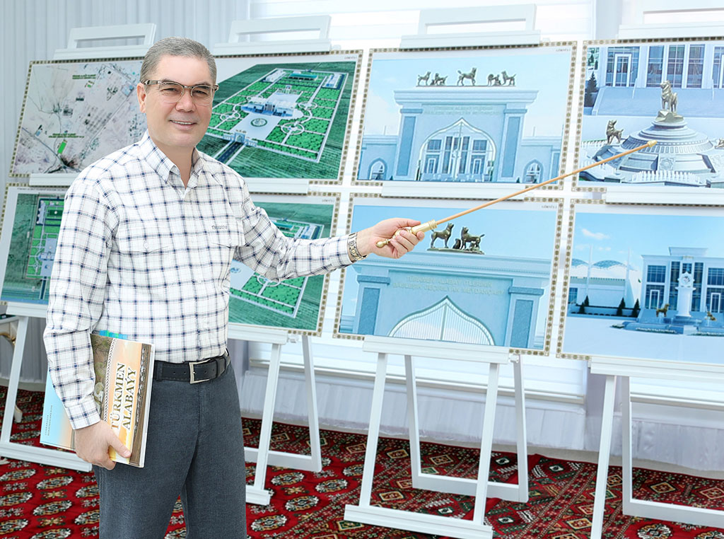 President Gurbanguly Berdimuhamedov has had a working trip around the capital and its outskirts. Measures for development of national kennel system, which century-old traditions are integral part of national heritage, were subject of close attention of the Head of the State. In the morning, President Gurbanguly Berdimuhamedov has come to one of the picturesque places of the capital where Turkmen leader was met by some Deputy Chairmen of the Cabinet of Ministers, heads of relative ministries and departments. Upon arrival, the Head of Turkmenistan has inspected the measures for development of infrastructure of national horse breeding. Deputy chairman of «Türkmen alabaý itleri» Association A. Yazmyradov has presented number of developed profile projects. General plan and project of breeding centres of Turkmen alabay, which are to be built in Ashgabat as well as in Balkan, Dashoguz, Lebap and Mary regions, have been presented to the President for review. In addition, general plan of Quarantine centre, which is planned to be built in Ahal Region, was presented to the attention of the Head of the State. This year, «Türkmen alabaý itleri» Association has been established by the initiative of President Gurbanguly Beerdimuhamedov, its Chapter and logotype have been approved, the chairman has been elected and control and revision commission of the Association has been formed up. Foundation of this profile structure is to support the succession of the best traditions of national kennel school, breeding and registration of alabays on systematic base using methods of national selection and modern achievements of the world science. It is worth to remind that opening ceremonies of vet clinic and domestic animal complex – fundamentally new facilities, which meet modern requirements and are provided with specialized equipment and built by initiative of the President of Turkmenistan, have been held last May. The Head of the State has studied in details with presented projects of breeding centres, which activity is to breed thorough-bred alabays, protect and develop this legendary breed and its best properties. Infrastructure of each centre includes checkpoint, administrative office, building for personnel, exhibition and training ground, tribune, veterinary building and other related facilities. In addition, different options of sculpture of alabays, which according to architects are planned to be placed on the central arch and territory of the complex, have been demonstrated to President Gurbanguly Berdimuhamedov. General layout of the arena designated for various competitions among Turkmen alabays and projects of facilities of the arena have been demonstrated to the President. It includes a tribune, exhibition and training grounds, building for veterinary service and personnel and other auxiliary facilities. Quarantine centre for 30 dogs, which territory will accommodate the complex of profile and auxiliary facilities, is planned to be built in Ahal Region. Having noted that being loyal friends, assistants and companions of Turkmen people throughout the centuries, alabays have always demonstrated exemplary boldness and unlimited dedication, President Gurbanguly Berdimuhamedov highlighted that owing to these merits, these dogs have occupied an honoured place in the history, culture and daily life of our people. Addressing Minister of Industry and Construction Production, Chairman of «Türkmen alabaý itleri» Association S. Berdimuhamedov and Deputy Chairman of the Association A. Yazmyradov, the Head of the State gave instruction related to successful solution of objectives for protection and passing of rich practice and century-old traditions of breeding of alabays, which are national heritage of Turkmen nations, to future generation. Studying the projects, the Head of the State has made number remarks and proposals. The President noted that breeding and quarantine centres, arena for competitions among Turkmen alabays have to meet their purpose and high quality characteristics. The same is related to construction, development and provision of these facilities, creation of all necessary conditions for breeding and training of thoroughbred alabays, protection and improvement of the best traditions of national kennel school, formation of valuable gene pool of the breed, conduct of relative scientific and selection works on systematic basis, the President highlighted. Having looked around various sculptures of alabays, the Head of the State focused that they have to reflect character features of this dog. Due to its exterior, behavior and character, the alabay are distinguished with physical power and kindness and obeying character at the same time. They are very popular not only in Turkmenistan but also abroad. The dog deservingly occupies leading position among watchdog breeds in many countries of the world, therefore, it is important not to lose any merit while breeding alabays. Speaking of this, the President of Turkmenistan has given assignments on decoration of interior of the facilities, where bright national patterns have to be distinguishing feature.
