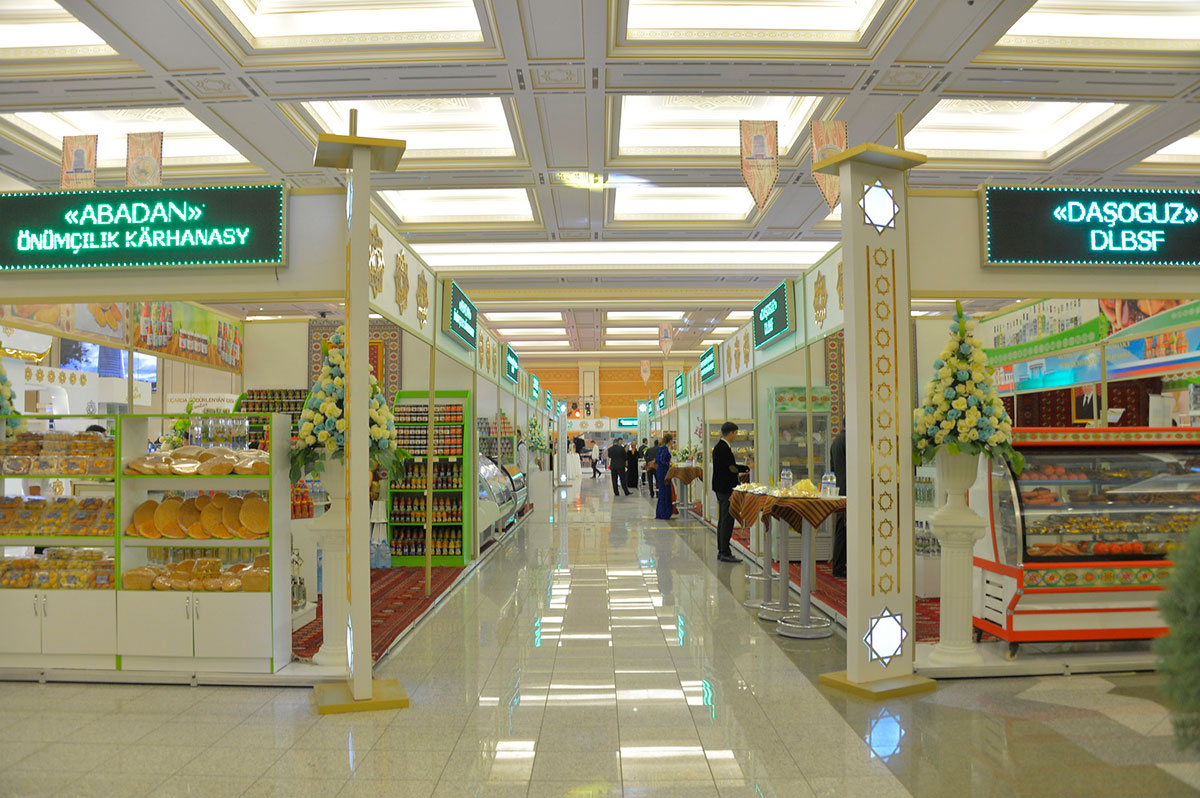 В экспоцентре Торгово-промышленной палаты открылась выставка-ярмарка «Торговля и услуги-2018», в которой принимают участие более пятидесяти предприятий и структур Министерства торговли и внешнеэкономических связей. В их числе – предприятие «Türkmeneksport», специализирующаяся на приграничной торговле фирма «Howdan-Bajygyran», Ашхабадское городское объединение рынков. Свои стенды здесь развернули также производственно-торговые организации и объединения потребительских обществ страны. Коммерческий центр «Mizan», предприятия «Kümüş-Aý», «Ruhybelent», «Altyn Ýyldyz», культурно-развлекательный центр «Parahat» рекламировали систему услуг в области общественного питания. На смотре демонстрировались и другие направления сервиса: компьютерные услуги – от Центра компьютерных технологий, туристические – гостиницами Национальной туристической зоны «Аваза». Среди экспонентов – торгово-кооперативная школа и начальная профессиональная школа, готовящие специалистов среднего звена для отрасли, ведомственный хоккейный клуб «Şir» и газета «Бизнес-реклама». Символическое оформление павильонов в виде путешествия из прошлого в будущее явилось отражением лейтмотива выставки-ярмарки. Так, у входа в экспоцентр установлены декорации восточного базара, воплощающие образы из книги Президента Гурбангулы Бердымухамедова «Туркменистан – сердце Великого Шёлкового пути». Живописным этнографическим дополнением к общей картине стали юрты с щедрыми дастарханами внутри, яркая палитра ковров и ковровых изделий, а также великолепная коллекция музейных экспонатов, включающая старинные предметы быта, народных ремёсел и др. Посетители смотра имеют возможность проследить за вековыми преображениями сферы торговли на протяжении веков, сохранив при этом многие черты, присущие ей ещё с древних времён, когда в сердце важнейшего исторического маршрута только начинала зарождаться международная торговая деятельность, какой мы знаем её сегодня. Основная часть выставочного зала, где представлены стенды предприятий, напоминает современный торгово-развлекательный центр, на площадках которого разместились бакалейные ряды, пестрящие свежими овощами и фруктами прилавки, витрины с разнообразной продукцией отечественного пищепрома и расположенные в секторе фуд-корта кафе и рестораны. Здесь посетителям предлагается отведать блюда туркменской, а также европейской и азиатской кухонь. Участниками нынешнего смотра стали также торговые дома Туркменистана в иностранных государствах. В последние годы были открытые торговые представительства нашей страны в Китае, Турции, России, Беларуси, Кыргызстане, Грузии и др. Осуществляемая через эти учреждения торговля высококачественной сельскохозяйственной и промышленной туркменской продукцией набирает обороты. Благодаря развёрнутой масштабной работе по импортозамещению, интенсификации сельского хозяйства, развитию перерабатывающих производств и созданию новых для туркменской экономики промышленных направлений день ото дня расширяется перечень выпускаемой в стране продукции, востребованной и конкурентоспособной. Ярким подтверждением тому служат представленные на смотре отечественные новинки в продовольственном секторе, где почти всё можно продегустировать и приобрести. Выставка-ярмарка «Торговля и услуги-2018» – своего 