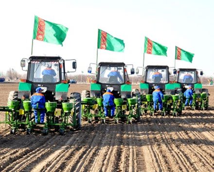Сегодня, 27 марта, в стране стартовала важная сельскохозяйственная кампания – сев хлопчатника, начало которого, как известно, на состоявшемся 20 марта заседании Кабинета Министров благословил Президент Туркменистана Гурбангулы Бердымухамедов. В соответствии с распоряжением главы государства, к посевной приступили хлопкоробы Ахалского, Лебапского и Марыйского велаятов. Чуть позже – 3 апреля – к ним присоединятся земледельцы Дашогузского велаята. По доброй народной традиции начало сева благословили почтенные старейшины. Вознеся ко Всевышнему молитву о благополучии и процветании Отчизны, всего туркменского народа, Президента Туркменистана Гурбангулы Бердымухамедова, они бросили в землю первые семена хлопчатника, а затем уступили место механизаторам. Как известно, возделывание этой ценной культуры является одним из приоритетных направлений деятельности агропромышленного комплекса Туркменистана. В прошлом году мастера «белого золота» перевыполнили свои договорные обязательства, сдав на харман Родины свыше 1 миллиона 100 тысяч тонн хлопка-сырца. Это достижение отечественных хлопкоробов – зримый результат широко развернутых по инициативе Президента Гурбангулы Бердымухамедова прогрессивных реформ и масштабных преобразований в отечественном АПК, в частности, внедрения в производство передовых разработок сельскохозяйственной науки, использования высокопроизводительной сельхозтехники и высококачественного посевного материала, соблюдения норм агротехники и др. Вывести отечественный АПК на качественно новые рубежи и тем самым еще более укрепить позиции нашей страны как экономически процветающего государства призвана «Программа развития сельскохозяйственной отрасли Туркменистана на 2012-2016 годы», разработанная с учетом приоритетов «Программы Президента Туркменистана по социально-экономическому развитию страны на 2012-2016 годы». В рамках реализации этих программ первоочередное внимание уделяется модернизации инфраструктуры, дальнейшему укреплению материально-технической базы хлопководческой отрасли, в том числе строительству новых современных хлопкоочистительных заводов. Так, в прошлом году в Куняургенчском этрапе Дашогузского велаята было введено в строй предприятие, специализирующееся на переработке семенного хлопка, мощностью 40 тысяч тонн продукции в год. А на хлопкоочистительном заводе, расположенном в этрапе Героглы, открыт еще один цех. В ближайшее время инфраструктуру отрасли пополнят еще два хлопкоочистительных предприятия по переработке семенного хлопка годовой мощностью 40 тысяч тонн каждое - в этрапе Алтын асыр Ахалского велаята и в Сакарчагинском этрапе Марыйского велаята. Оснащенные новейшим оборудованием, эти заводы призваны поднять на новый уровень культивирование хлопчатника. Ведь предназначены они исключительно для переработки семенного хлопка, получения наилучшим образом подготовленных высококачественных семян, которые затем лягут в изобильную туркменскую землю и станут основой еще более высоких урожаев. В нынешнем году в Туркменистане под хлопчатник отведено 545 тысяч гектаров земли. В общей сложности, намечено собрать 1 миллион 50 тысяч тонн «белого золота», в том числе, в Ахалском велаяте – 207 тысяч тонн, в Дашогузском велаяте – 230 тысяч тонн, в Лебапском велаяте – 300 тыс