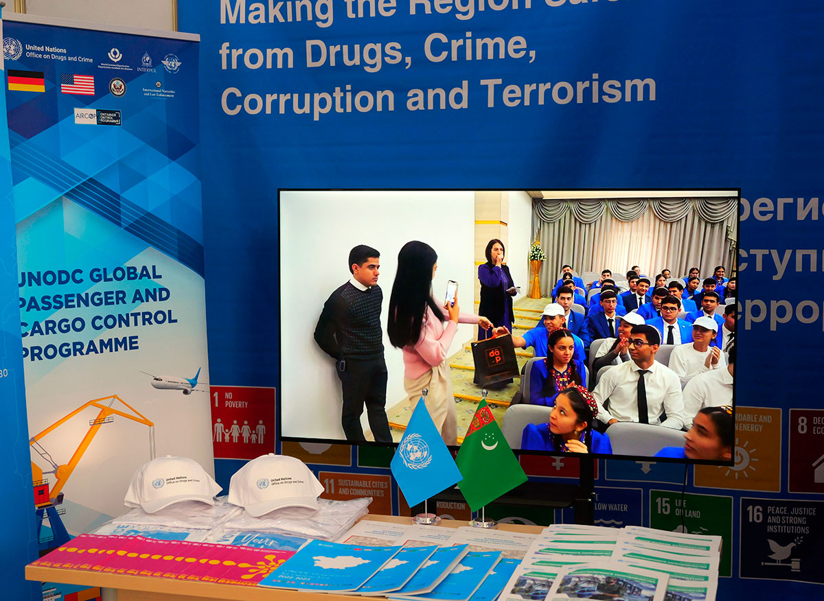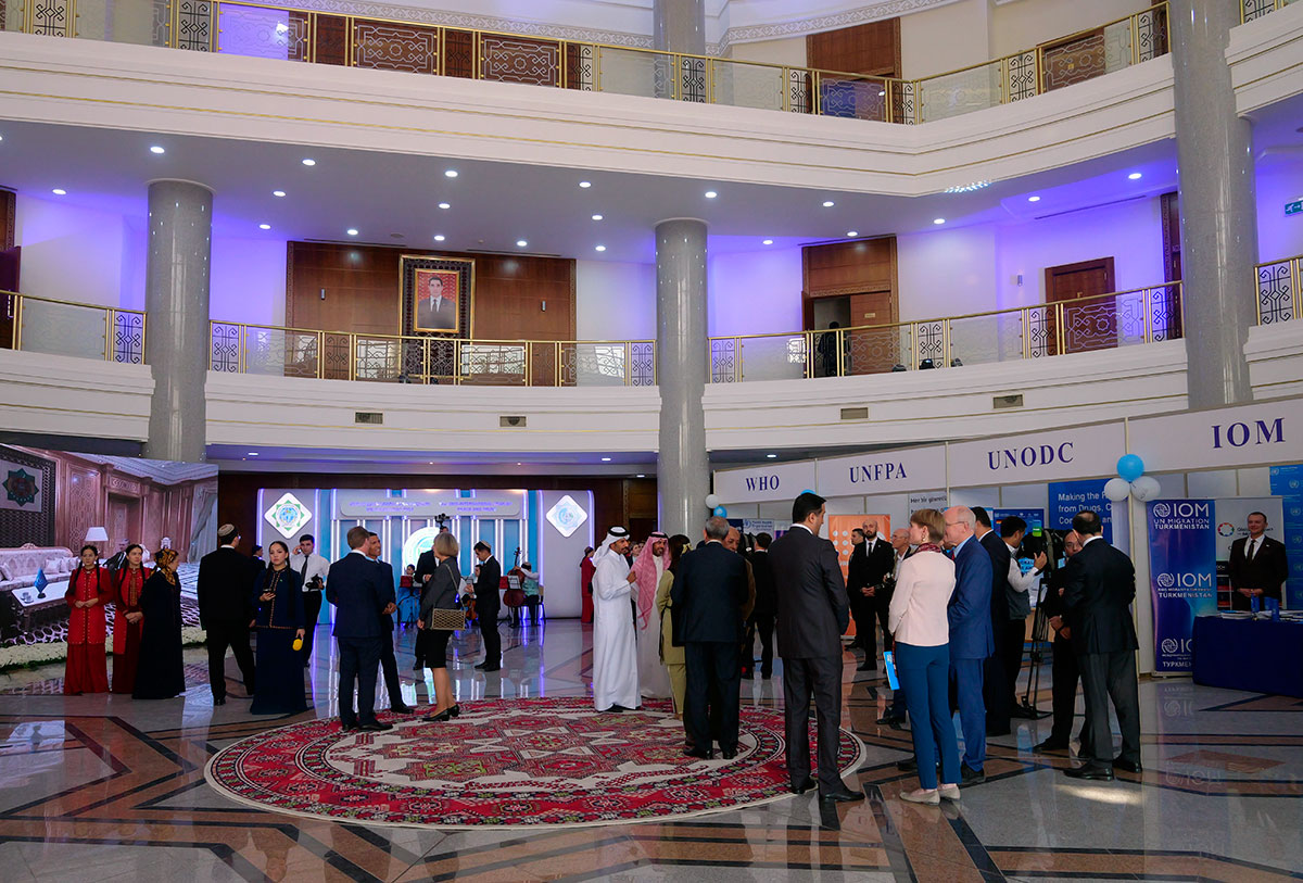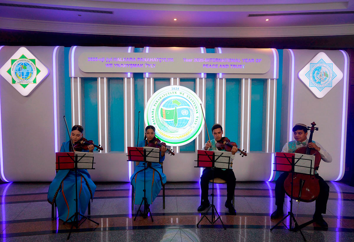 В фойе вуза участники форума ознакомились с экспонатами выставки, посвящённой национальным ценностям нашего народа и направлениям сотрудничества Туркменистана с ООН. Яркий колорит в происходящее привнесли песенно-музыкальные выступления.
