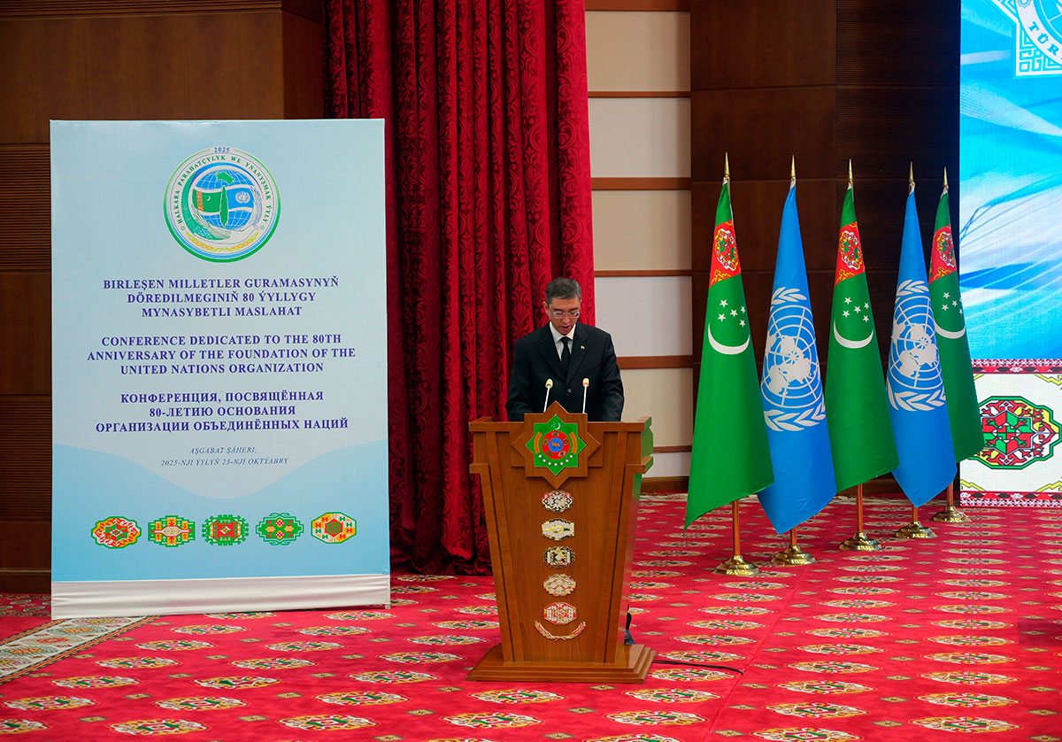 Сегодня в Институте международных отношений Министерства иностранных дел Туркменистана состоялась конференция, посвящённая 80-летию основания Организации Объединённых Наций. В ней приняли участие руководители МИД, министерств финансов и экономики, здравоохранения и медицинской промышленности, образования, а также главы аккредитованных в нашей стране представительств специализированных структур ООН, профессорско-преподавательский состав и студенты высших учебных заведений.