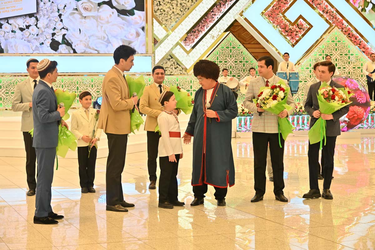 Программу открыла литературно-музыкальная композиция «Arkadagly, Arkadagly Serdarly gül Watanda eneleriň mähri bar» в исполнении объединённого коллектива артистов театров страны. В выступлении были художественно воспеты красота, благородство и душевная чистота туркменских женщин, а также глубокое почтение, которым окружены матери в нашем независимом Отечестве.