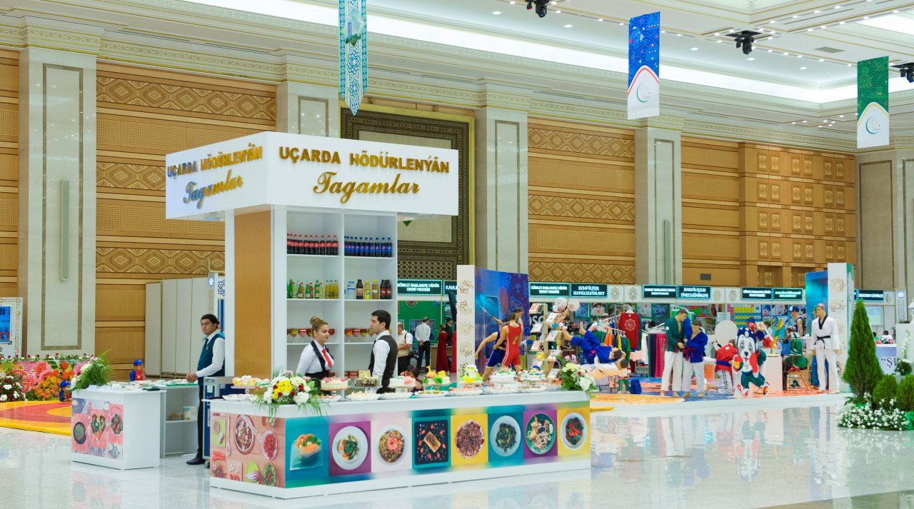 В экспоцентре Торгово-промышленной палаты Туркменистана открылась выставка-ярмарка «Торговля и услуги-2017». В смотре принимают участие более 50 ведущих предприятий и структур Министерства торговли и внешнеэкономических связей Туркменистана, производственно-торговые организации и объединения потребительских обществ страны, а также совместные торговые дома Туркменистана с Россией, Беларусью, Турцией. Система услуг в области общественного питания представлена коммерческим центром «Mizan», предприятиями «Kümüş-Aý», «Ruhybelent», «Altyn Ýyldyz», культурно-развлекательным центром «Parahat». Среди других направлений сервиса, отражённых на выставке, – компьютерные и гостиничные услуги. В числе экспонентов также Торговая кооперативная школа и начальная профессиональная школа, готовящие специалистов среднего звена для отрасли, находящиеся в ведении Министерства торговли и внешнеэкономических связей хоккейный клуб «Şir» и газета «Бизнес-реклама». Все они объединены на пространстве огромного зала, зонированного по принципу торгово-развлекательного центра – с бакалейными рядами, пестрящими свежими овощами и фруктами прилавками, яркими витринами с продукцией отечественного пищепрома и расположенными в секторе фуд-корта кафе и ресторанами. Здесь посетителям выставки предлагается отведать блюда национальной туркменской, а также европейской и азиатской кухонь. Помимо дегустации, гости могут оценить уровень обслуживания. Нынешний смотр – своего рода срез национальной торговой отрасли на сегодняшний день, по которому можно судить о тенденциях её развития, состоянии внутреннего рынка, экспортных возможностях отечественных производителей. Главная особенность представленного здесь разнообразия товаров это то, что еще несколько лет назад большая часть из них завозилась из-за рубежа. Один из самых оживленных стендов на выставке – «Ашхабад-2017», где представлена текстильная и сувенирная продукция с символикой V Азиатских игр в закрытых помещениях и по боевым искусствам. Торговая политика представляет собой один из ключевых факторов экономического развития Туркменистана и его внешнеполитических отношений. Эта тема неизменно входит в сферу обсуждений вопросов сотрудничества на встречах Президента Гурбангулы Бердымухамедова с главами государств и правительств других стран.