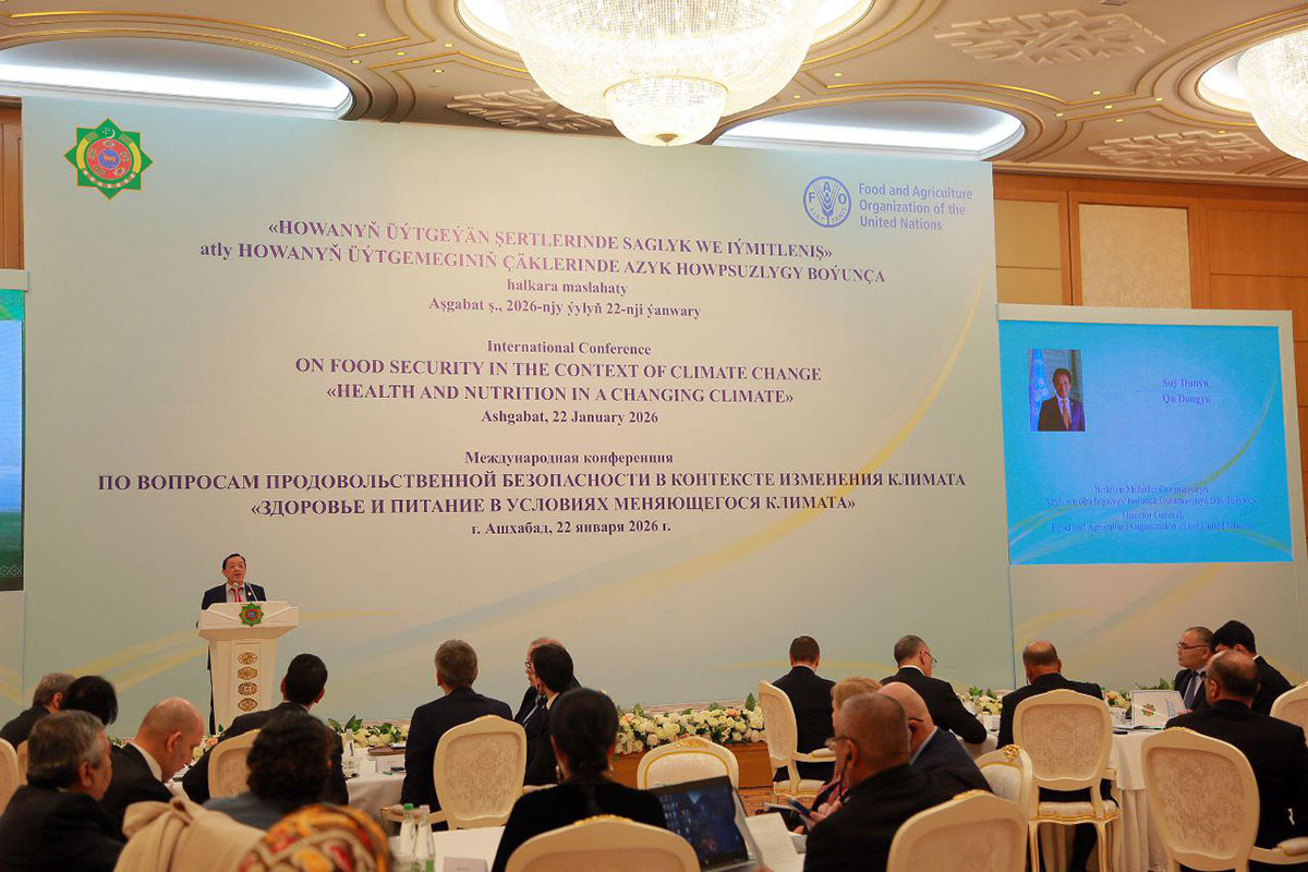 Şu gün paýtagtymyzda “Howanyň üýtgemegi şertlerinde saglyk we iýmitleniş” atly halkara maslahat geçirildi. Munuň özi ýurdumyzyň bu ugurda umumy tagallalary birleşdirmäge uly goşant goşýandygynyň nobatdaky güwäsidir. Maslahata Türkmenistanyň ugurdaş ministrlikleriniň, Birleşen Milletler Guramasynyň Azyk we oba hojalyk boýunça guramasynyň (FAO), Ösüş maksatnamasynyň, beýleki halkara guramalaryň ýolbaşçylary hem-de wekilleri, Gazagystanyň, Gyrgyzystanyň, Özbegistanyň, Täjigistanyň, Eýranyň, Russiýanyň wekilleri gatnaşdylar.