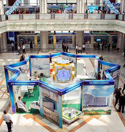 Ашхабад, 19 июля (TDH). Сегодня в столичном выставочном центре «Sergi köşgi» состоялось торжественное открытие Международной выставки «Saglyk-2015», приуроченной к празднованию 20-летия со дня принятия Государственной программы «Saglyk» и широко отмечаемому в нашей стране Дню работников здравоохранения и медицинской промышленности. Организацию крупного отраслевого смотра осуществляют Министерство здравоохранения и медицинской промышленности Туркменистана совместно с Торгово-промышленной палатой. В его торжественном открытии приняли участие члены правительства, руководители и представители Меджлиса, аккредитованных в Туркменистане дипломатических миссий, медицинских научно-клинических центров, Академии наук, общественных организаций, а также ряда министерств и ведомств, учебных заведений, средств массовой информации и многочисленные работники сферы отечественного здравоохранения. С большим вниманием заслушали собравшиеся приветственное Обращение Президента Туркменистана Гурбангулы Бердымухамедова к участникам Международной выставки «Saglyk-2015», в котором лидер нации подчеркнул значение специализированного смотра в расширении международного сотрудничества в области освоения и внедрения в медицину передовых методик и инновационных проектов, дальнейшем ускоренном развитии сферы. За годы проведения выставка завоевала репутацию одного из самых крупных и престижных форумов, демонстрирующих современные достижения медицинской науки и практического здравоохранения. В нынешнем году в этом масштабном смотре принимают участие специалисты различных областей медицины из 41 страны мира. В выставке, наряду со стендами государственных министерств и ведомств, крупных научно-клинических и образовательных центров, санаториев нашей страны, представлены экспонаты 251 компании - производителей широкого спектра фармацевтической продукции, медицинского оборудования, предоставляющие услуги в различных областях системы здравоохранения. Самое большое количество экспонентов из стран Европы – 137 компаний. В числе «новичков» – 25 компаний. Традиционно широко представлены профессионалы медицинской отрасли - компании Германии, Великобритании, России, Индии, Китая, Турции и США. Этот факт свидетельствует о долгосрочных интересах партнеров, подтверждает их нацеленность на многолетнее сотрудничество. Открывает экспозицию павильон Министерства здравоохранения и медицинской промышленности Туркменистана, где представлены копии международных сертификатов, свидетельствующих о признании заслуг нашей страны в ликвидации ряда инфекционных заболеваний. На стенде министерства демонстрируются научные труды главы Туркменистана, книги, посвященные уникальным, произрастающим на туркменской земле, лекарственным растениям. Президент Туркменистана, академик Академии наук Туркменистана, доктор медицинских наук, профессор, автор фундаментальных исследований в области медицины Гурбангулы Бердымухамедов создал национальную модель развития медицины, объединившую в себе мудрость и опыт предков, а также современные тенденции мирового здравоохранения. В центре экспозиции цокольного этажа на огромном мониторе демонстрируются кадры, рассказывающие о проводимой в нашей стране под руководством лидера нации многоаспектной работе по укрепле