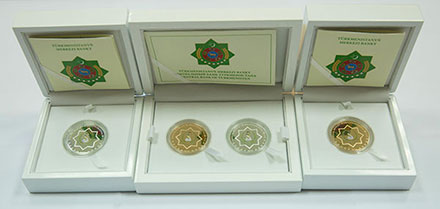 В канун знаменательной для независимого нейтрального Туркменистана даты – 20-й годовщины со дня принятия Государственной программы «Saglyk» – Центральный банк страны выпустил золотую и серебряную монеты достоинством в 50 манат каждая, а также комплект из этих монет. Нумизматические новинки изготовлены Монетным двором Великобритании «The Royal Mint Limited». Их дизайн, так же, как и все образцы национальной валюты, отличается своей оригинальностью и соответствует лучшим национальным традициям туркменского народа. В центральной части лицевой стороны новых памятных монет размещается восьмиугольник, в котором изображен символ здравоохранения Туркменистана в виде змеи - кобры в обрамлении лекарственных растений ферулы (Ferula) и гармалы (Peganum harmala), произрастающих на благодатной туркменской земле и широко используемых в народной медицине с глубокой древности. Внизу восьмиугольника – надпись «TURKMENISTANYN LUKMANÇYLYGY». Надпись «SAGLYK DÖWLET MAKSATNAMASYNA 20 ÝYL», украшающая верхнюю часть аверса (лицевой стороны) монеты по окружности, напоминает об историческом событии, в честь которого и выпущены нумизматические новинки. В нижней части указан год выпуска памятной монеты – «2015 ý». На оборотной стороне обеих монет в центре расположен Государственный герб Туркменистана, над которым по верхнему краю монеты полукругом помещена надпись «TURKMENISTANYN MERKEZI BANKY», а в нижней части – надпись «ELLI MANAT», отражающая ее номинальное достоинство. Слева от этой надписи указана проба монеты (на золотой – Аu 916,7, на серебряной – Ag 925), справа – ее вес. При одинаковом диаметре – 38,61 мм – монета из золота имеет вес 39,94 грамма, из серебра, соответственно, – 28,28 грамма. Надписи разделены узорами в виде восьмиконечной звезды. Раритеты, навечно запечатлевшие знаменательную для нашей страны дату, пополнят создаваемую в Туркменистане бесценную нумизматическую коллекцию и, безусловно, станут замечательным подарком для многочисленных отечественных и зарубежных коллекционеров. Высокое качество монет – «пруф» – гарантирует прилагаемый к ним сертификат Центрального банка Туркменистана.