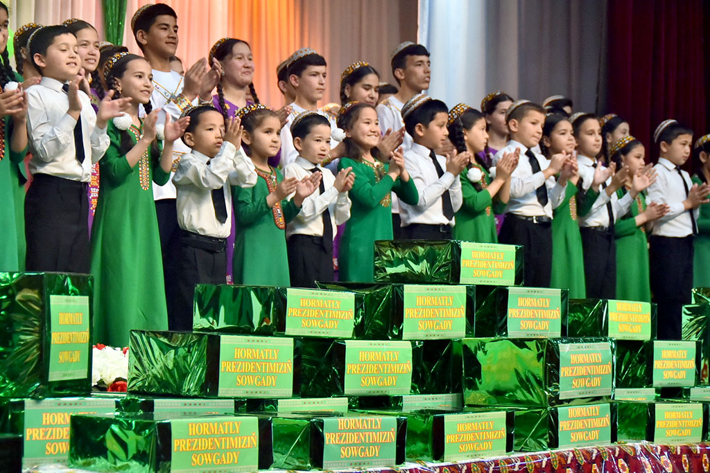 В Döwletliler köşgi (Дворец детей-сирот) состоялось праздничное мероприятие, в ходе которого его воспитанникам переданы от имени Президента Туркменистана Гурбангулы Бердымухамедова сладкие подарки. В гости к ребятам приехали представители национального парламента, Демократической партии и общественных объединений страны. С добрыми пожеланиями к воспитанникам Дворца детей-сирот обратились вице-спикер национального парламента Касымгулы Бабаев, председатель Демократической партии Туркменистана Ата Сердаров и руководитель Молодежной организации имени Махтумкули Язберды Овезбердыев. Как отмечалось, всемерная забота о подрастающем поколении туркменистанцев, создание условий для гармоничного развития детей, раскрытия их личностного потенциала является приоритетным аспектом социальной политики туркменского лидера. Воспитанники Дворца адресовали Президенту Гурбангулы Бердымухамедову признательность за заботу и отеческое внимание. Торжество продолжилось праздничным концертом, подготовленным детскими творческими коллективами.