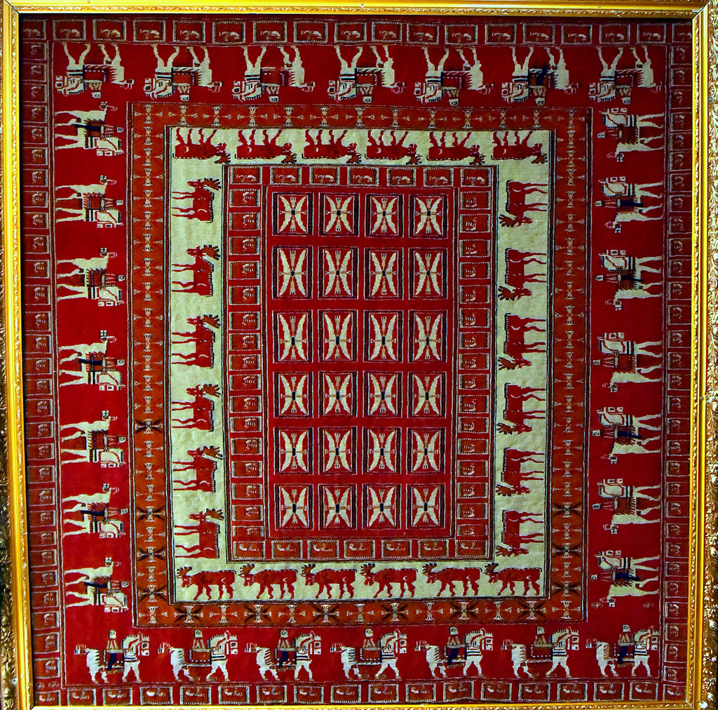 В Торгово-промышленной палате состоялась юбилейная XХ конференция Всемирной ассоциации ценителей туркменского ручного ковроделия. В числе участников – председатель Национального комитета совета международных музеев Азербайджана, директор Берлинского государственного музея археологии, руководители компаний «TECHCON GmbH» (ФРГ), «Linkway» (Турция), партнёры и ценители туркменского ковроделия из России, Казахстана, Узбекистана, Таджикистана, а также учёные-историки и искусствоведы, эксперты, мастера-ковроделы и коллекционеры из Японии, Китая, Саудовской Аравии, Объединённых Арабских Эмиратов и др. На полях форума и по видеосвязи были обсуждены достижения в решении задач бережного сохранения и широкой популяризации духовного и культурного наследия туркменского народа, национальных традиций ручного ковроткачества и других видов декоративно-прикладного искусства, внедрение новейших промышленных разработок в отрасли. Как отмечалось, полотна туркменских мастериц, издавна славящиеся по всему миру, и поныне являются предметом всеобщего восхищения. В новую историческую эпоху это искусство, органично соединяя многовековой опыт и современные технологии, наполняется новым содержанием. Выступающие поделились результатами научных исследований по истории происхождения ковровых орнаментов, развитию этого искусства в различных странах. Участникам конференции была продемонстрирована современная копия древнего ковра, найденного в одном из курганов на вершине Пазырык Алтайских гор, который датируется приблизительно V веком до нашей эры. Вот, что пишет об этом шедевре древних туркменских ковровщиц Президент Гурбангулы Бердымухамедов в книге «Живая легенда», переведённой на многие языки мира: «Плотное шерстяное ворсовое полотно с изображением оленей, грифов и коней было найдено во время раскопок царского могильного кургана в Горном Алтае в 1949 году. А тому, что оно так великолепно сохранилось, мы обязаны вечной мерзлоте – в захоронение проникали вода и воздух, в результате ковёр оледенел и потому избежал гниения». Историей «пазырыкского ковра» в настоящее время занимается Институт языка, литературы и национальных рукописей имени Махтумкули Академии наук Туркменистана. А его копия была представлена Государственным объединением «Туркменхалы». «Близнец» легендарной находки соткан на Ашхабадском предприятии художественного ковроделия. Размер ковра - 2,06 метра на 1,97 метра, общая площадь - 4,06 квадратных метра. В каждом квадратном метре 385 тысяч узелков, а в целом – 1 563100 узелков.