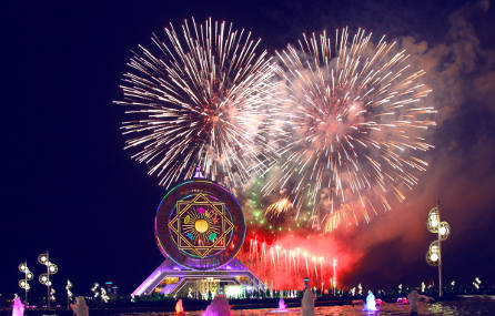 Праздничное торжество с концертным представлением в честь Дня независимости состоялось сегодня вечером на площади перед культурно-развлекательным центром «Älem», где собрались многочисленные жители и гости столицы. В концерте приняли звезды музыкальной сцены, мастера и молодые эстрадные солисты, в том числе победители конкурса «Ýaňlan, Diýarym!-2016», оркестр «Aşgabat», фольклорные ансамбли «Serpaý» и «Laçyn», танцевальные группы «Meňli» и «Näzli», девичья группа «Läle» и хор Туркменской национальной консерватории. А с наступлением темноты раздались залпы праздничного салюта и в вечернем небе над огромным колесом обозрения центра «Älem» вспыхнул искрящийся фонтан света.