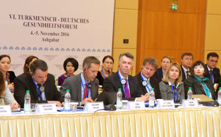 В конференц-зале столичного отеля «Йылдыз» начал работу VI Туркмено-германский медицинский форум. В Ашхабад прибыла делегация в составе представителей Федерального министерства здравоохранения Германии, экспертов крупнейших компаний-разработчиков высокотехнологичного медицинского оборудования, а также известных ученых-профессоров ведущих клиник из различных городов ФРГ. С туркменской стороны участие в двухдневном форуме принимают руководители и специалисты государственных структур и научно-клинических центров, санаторно-лечебных учреждений, профессорско-преподавательский состав Туркменского государственного медицинского университета. На открытии форума Чрезвычайный и Полномочный Посол ФРГ в Туркменистане г-жа Маргарет Мария Юббер отметила, что тесное сотрудничество по обмену опытом, обучению и подготовке высококвалифицированных кадров стало весомым вкладом обеих стран в решении глобальных задач охраны здоровья людей. В ходе форума состоялся продуктивный обмен мнениями о достигнутых успехах в различных сферах здравоохранения, в частности, исследованиях и применяемых эффективных методиках при лечении сахарного диабета, онкологических заболеваний у детей и взрослых, имеющихся наработках в области эндокринологии и физиотерапии. Как отмечалось в докладах, туркменское здравоохранение берет на вооружение инновационные методики лечения, технологии и оборудование. Возводятся современные научно-клинические центры и лечебно-профилактические учреждения, оснащенные по последнему слову техники, причем значительная часть этого оборудования произведена в ФРГ - стране, являющейся лидером в этой сфере. Германские профессора отметили высокотехнологичную оснащенность туркменских клиник и эффективность государственной поддержки медицины Запланированы встречи представителей Федерального министерства здравоохранения ФРГ с руководством, преподавателями и врачами-интернами Туркменского государственного медицинского университета.