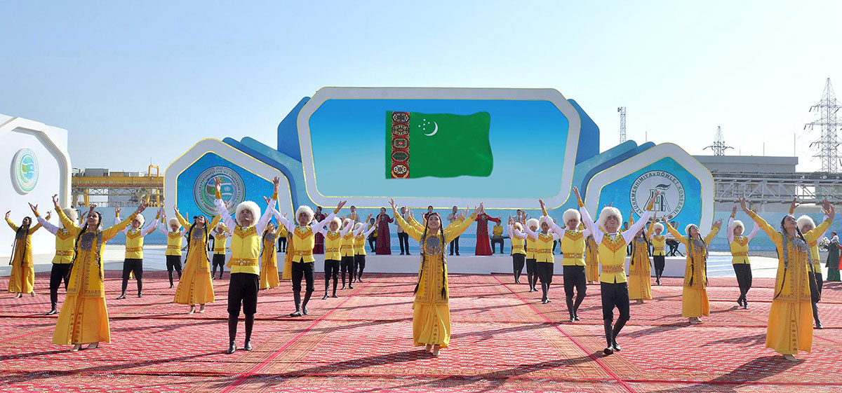 Затем Президент Туркменистана прибыл к месту проведения церемонии, где по случаю нынешнего торжества были организованы песенно-музыкальные выступления. Далее глава государства направился к специально оборудованному конференц-залу и выступил с приветственной речью.