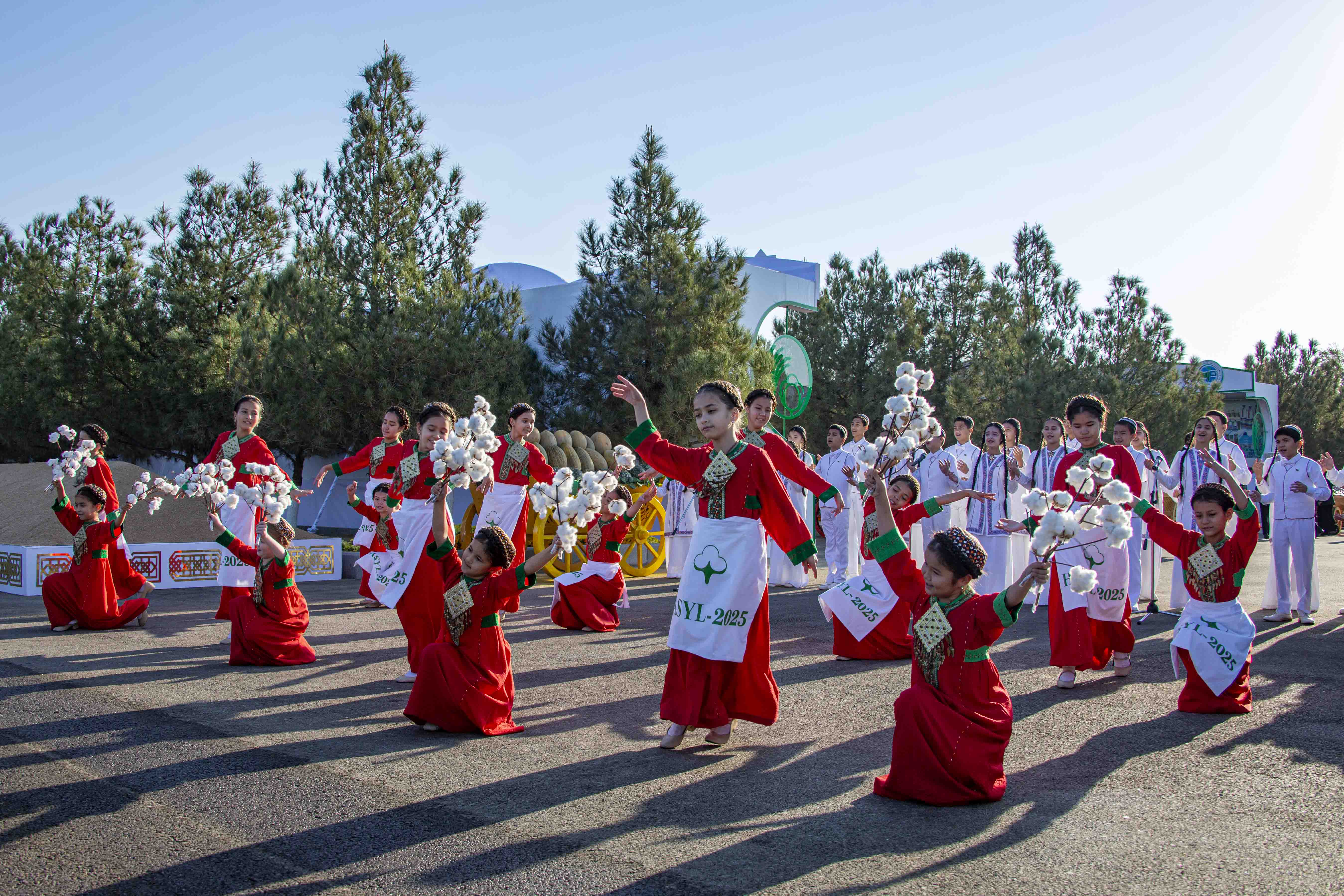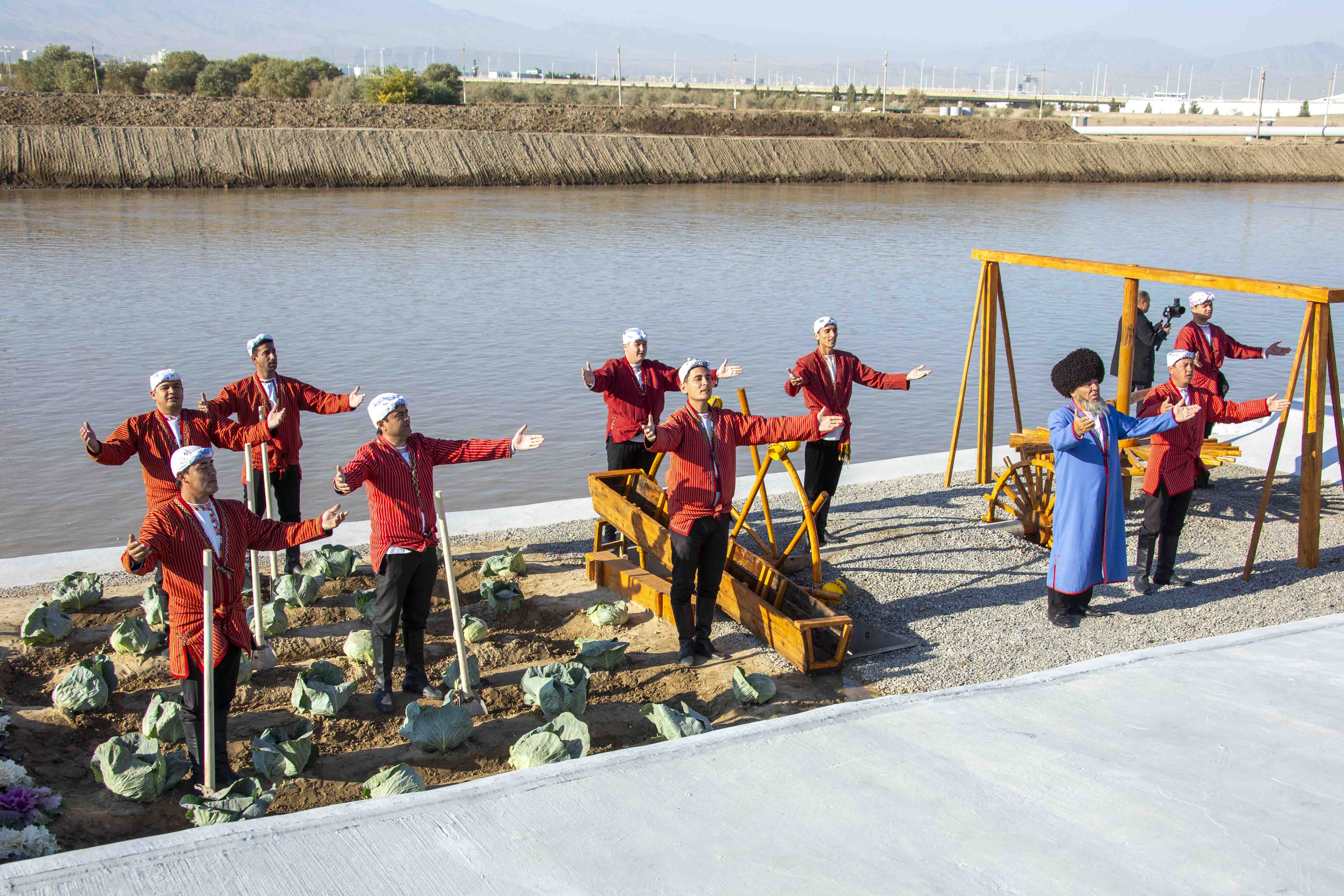 ...Утром на берегу Каракум-реки, протекающей через город Ашхабад, на импровизированной сцене состоялись выступления эстрадных певцов и творческих коллективов велаятов и столицы, которые прославляли достижения независимой Отчизны в эру Возрождения новой эпохи могущественного государства. Участников и гостей праздника встречали традиционным национальным угощением – пишме и различными сладостями.
