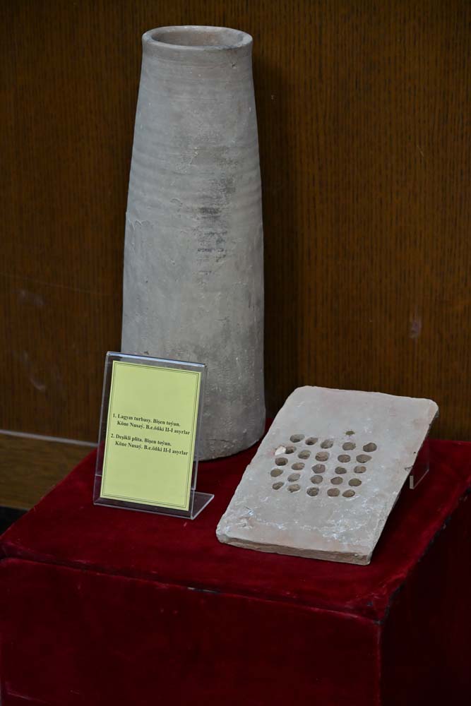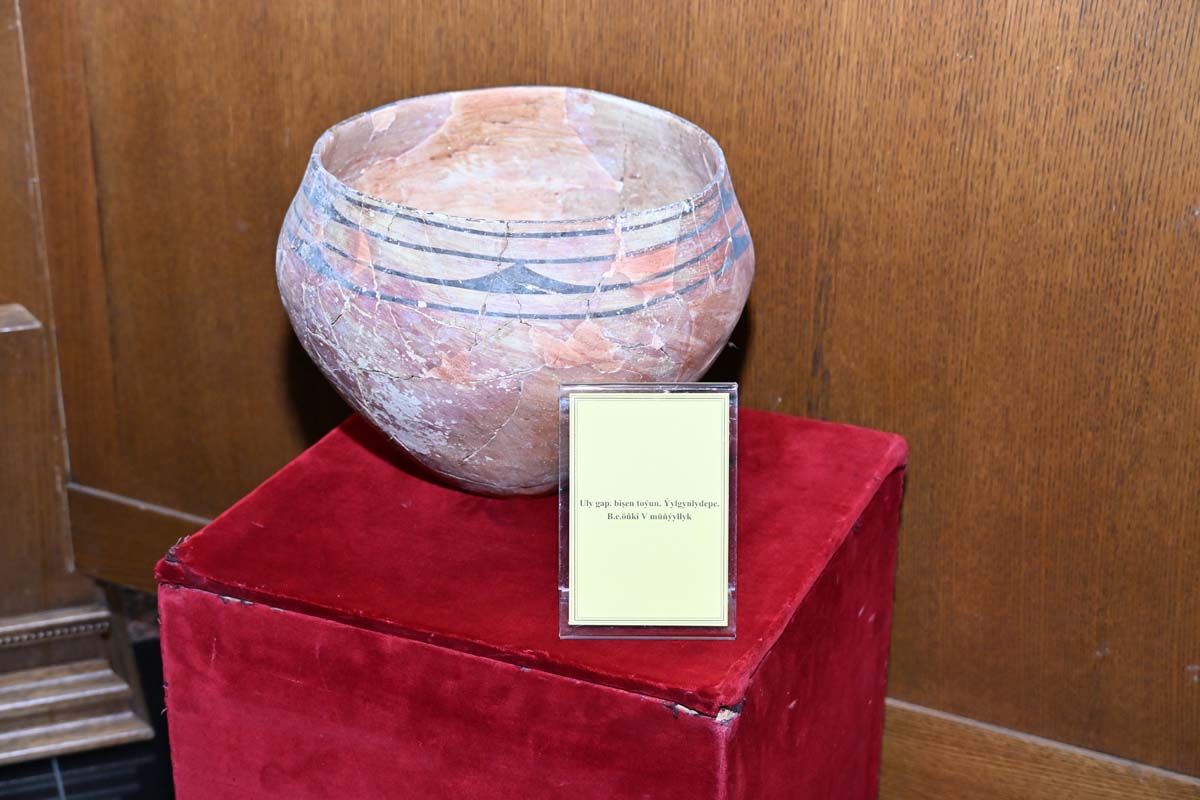 Среди переданных сегодня в дар музеям более трёхсот археологических находок – статуэтка коня, глиняная посуда, металлические стремянка, наконечник стрелы, орудия труда и другие предметы, обнаруженные в разные годы на таких всемирно известных памятниках, как Старая Ниса, Алтын-депе, Намазга-депе, Йылгынлы-депе, Гара-депе, Парыз-депе, и на других древних городищах Ахалского велаята.
