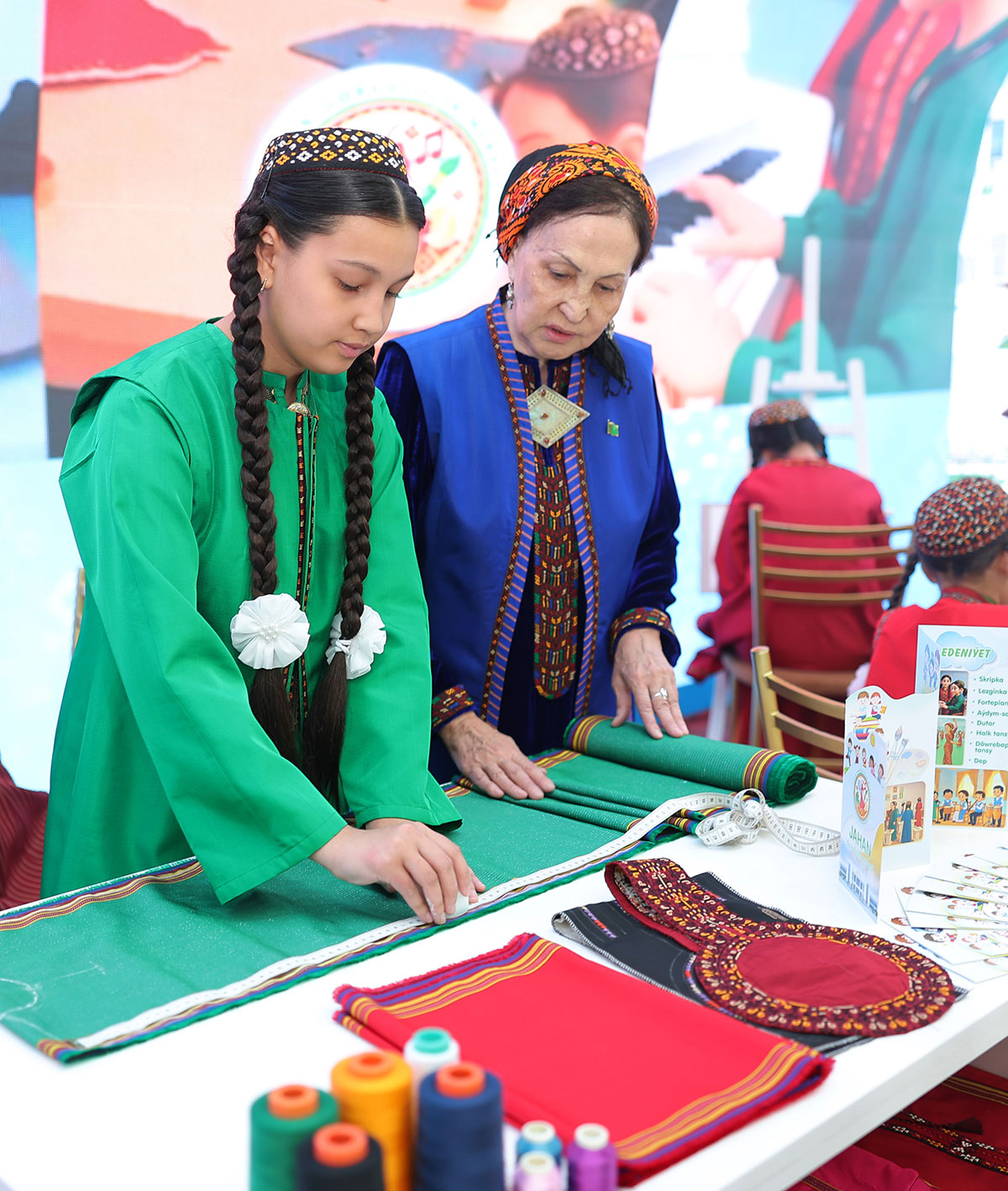 Главными экспонатами выставки стали произведения декоративно-прикладного искусства. Из истории известно, что туркменские женщины и девушки всегда были признанными талантливыми мастерицами.