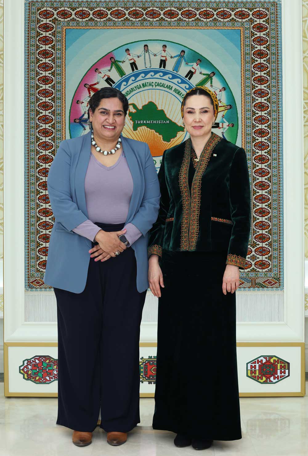 Сегодня состоялась встреча вице-президента по лечебной деятельности Благотворительного фонда по оказанию помощи нуждающимся в опеке детям имени Гурбангулы Бердымухамедова Огулджахан Атабаевой с представителем Детского фонда ООН (ЮНИСЕФ) в Туркменистане г-жой Джалпой Ратна. Стороны обсудили вопросы дальнейшего укрепления многолетнего эффективного диалога в интересах юных граждан страны.