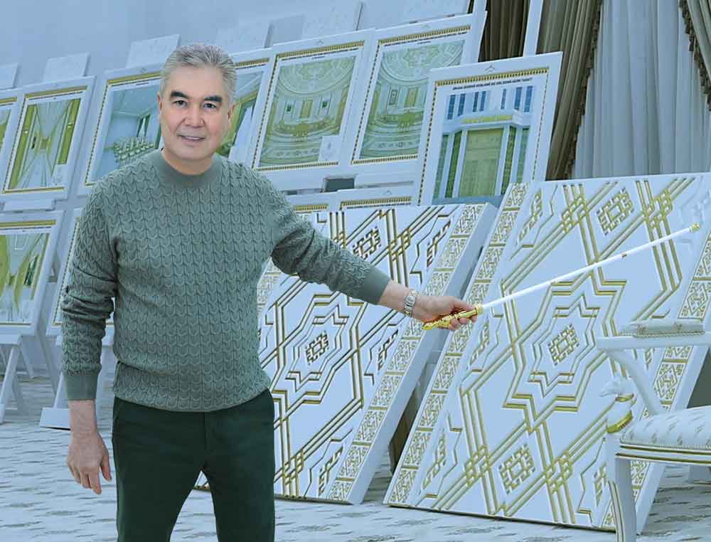 Затем Герою-Аркадагу были продемонстрированы проекты благоустройства проспекта Ахалтеке атлары, образцы оснащения и декоративного оформления административных зданий, а также этапы работ по модернизации монумента «Polatly».
