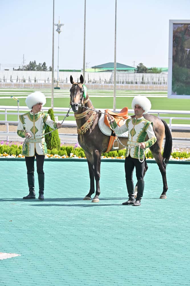 По случаю Национального праздника туркменского скакуна главе государства от имени жителей Ахалского велаята был передан в дар прекрасный скакун Гёзбаш, Балканского велаята – Сумбар, Дашогузского велаята – Шабат, Лебапского велаята – Джейхун, Марыйского велаята – Маргуш, города Ашхабад – Ниса, и от имени жителей города Аркадаг – Мертебели. Представители молодого поколения, представляющие велаяты и города Ашхабад и Аркадаг, выразили признательность Аркадаглы Герою Сердару в воодушевлённых стихотворных строках.