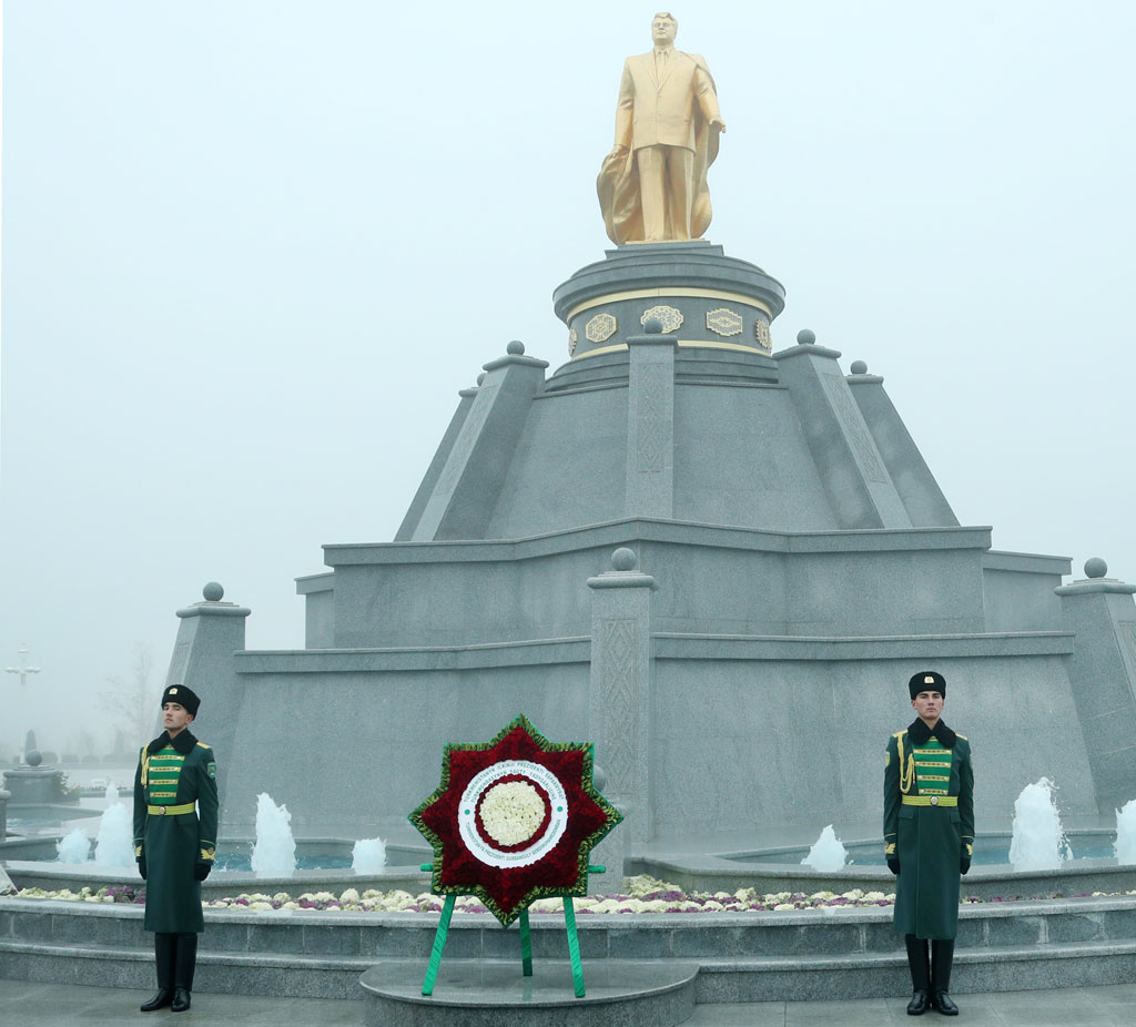 Şu gün milli Liderimiz Gurbanguly Berdimuhamedow paýtagtymyzdaky “Garaşsyzlygyň 10 ýyllygy” seýilgähindäki Türkmenistanyň ilkinji Prezidentiniň hatyrasyna S.A.Nyýazowyň heýkeline gül goýmak çäresine gatnaşdy. Geçenleri ýatlamak türkmen halkynyň köp müňýyllyklaryň dowamynda emele gelen we nesilden-nesle geçip gelýän mukaddes dessurlarynyň biridir. Berkarar döwletimiziň bagtyýarlyk döwründe döwlet Baştutanymyzyň ynsanperwer syýasatyna laýyklykda, bu ýörelgeler mynasyp derejede dowam etdirilýär. Bu bina Watanymyzyň garaşsyzlygynyň gazanylmagyna, özygtyýarlylygynyň berkidilmegine we bitaraplyk derejesiniň ykrar edilmegine mynasyp goşant goşan Saparmyrat Nyýazowyň ýagty ýadygärliginiň hatyralanmagy, bir ýyl mundan ozal hormatly Prezidentimiz Gurbanguly Berdimuhamedowyň başlangyjy esasynda Gypjakda degişli muzeýiň açylmagy türkmen halkynyň bu ýörelgelere ygrarlydygynyň aýdyň nyşany bolup durýar. Ir bilen milli Liderimiziň awtoulagy paýtagtymyzyň “Garaşsyzlygyň 10 ýyllygy” seýilgähiniň öňündäki meýdança geldi. Bu ýere Mejlisiň Başlygy, Ministrler Kabinetiniň Başlygynyň orunbasarlary, harby we hukuk goraýjy edaralaryň, ministrlikleriň we pudaklaýyn dolandyryş edaralarynyň ýolbaşçylary, Aşgabat şäheriniň häkimi, Türkmenistanyň daşary ýurtlardaky ilçileri, din wekilleri, jemgyýetçilik guramalarynyň ýolbaşçylary, köpçülikleýin habar beriş serişdeleriniň wekilleri, hormatly ýaşulular, talyp ýaşlar we köp sanly aşgabatlylar ýygnandylar. Garaşsyzlygyň ilkinji ýyllarynda başlanan ýol häzirki döwürde möçberi boýunça ägirt uly wezipeleri çözmäge gönükdirilendir. Milli Liderimiz Gurbanguly Berdimuhamedow şol wezipeleri öňde goýmak bilen, olary üstünlikli çözýär. Biziň ýurdumyz häzirki döwürde baý taryhy tejribä hem-de milli däplere daýanyp, döwlet Baştutanymyzyň parasatly ýolbaşçylygynda özygtyýarlylygy pugtalandyrmaga, durnukly durmuş-ykdysady ösüşe, halkymyzyň abadançylygyny has-da ýokarlandyrmaga, netijeli halkara gatnaşyklary ösdürmäge, ata Watanymyzyň abraýyny dünýä giňişliginde has-da artdyrmaga gönükdirilen syýasaty durmuşa geçirýär. Jemgyýetiň we döwletiň ähli ulgamlarynda düýpli özgertmeleriň amala aşyrylmagy netijesinde Türkmenistan döredijilik we ösüş ýoly bilen ynamly öňe gidip, dünýäniň sazlaşykly ösýän döwletleriniň hatarynda mynasyp orun eýeleýär. Hormatly Prezidentimiz Gurbanguly Berdimuhamedow S.A.Nyýazowyň ýadygärligine tarap ugrady we onuň etegine gül dessesini goýdy. Milli Liderimiziň göreldesine eýerip, çärä gatnaşyjylar gül desselerini goýýarlar. Bu çäre halkymyzyň Türkmenistanyň ilkinji Prezidentiniň ýagty ýadygärligini hatyralamak ýörelgesiniň aýdyň beýanyna öwrüldi. Gül goýmak çäresi tamamlanandan soň, S.A.Nyýazowyň ýagty ýadygärligi hatyralanyp, aýat-töwir okaldy.