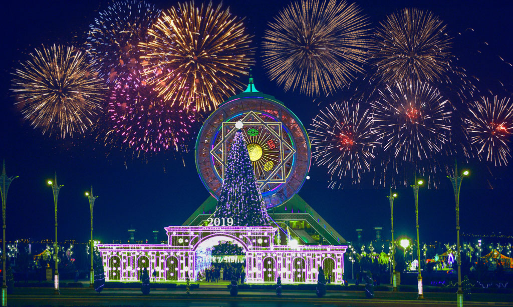 Türkmenistanlylar Täze, 2019-njy ýyly uly dabaralar bilen garşyladylar we ony agzybir maşgala hökmünde dabaralandyrdylar. “Türkmenistan — Beýik Ýüpek ýolunyň ýüregi” şygary bilen geçen 2018-nji ýyly uly hormat bilen tamamlady, ol unudylmajak aýdyň wakalara, täze üstünliklere beslendi. Ministrler Kabinetiniň 28-nji dekabrda geçirilen mejlisinde hormatly Prezidentimiz Gurbanguly Berdimuhamedow geçen ýylda ýerine ýetirilen işleri gysgaça jemläp, oňa oňyn baha berdi. Döwlet Baştutanymyzyň belleýşi ýaly, 2018-nji ýyl ýurdumyz üçin rowaçlykly, üstünlikli hem-de ýatda galyjy boldy. Möhüm wakalaryň hatarynda Owganystanyň çäklerinde Türkmenistan —Owganystan — Pakistan — Hindistan halkara gaz geçirijiniň gurluşygynyň başlanmagyny, Türkmenbaşy şäherinde Halkara deňiz portunyň we iri senagat toplumlarynyň açylmagyny, şeýle hem “Amul — Hazar” halkara awtorallisiniň, Agyr atletika boýuna dünýä çempionatynyň geçirilmegini we beýlekileri görkezmek bolar. Ählumumy ykdysadyýetdäki çylşyrymly ýagdaýlara garamazdan, ýurdumyz saýlap alan ýoly bilen ynamly öňe gitdi diýip, milli Liderimiz aýtdy. Bu ýol bolsa garaşsyzlyk, bitaraplyk, giň we netijeli halkara hyzmatdaşlygyna ygrarlylyk, eziz halkymyzyň bagtyýar durmuşyny üpjün etmek ýoludyr. Döwlet Baştutanymyz Gurbanguly Berdimuhamedow ykdysadyýet ulgamynda gazanylan görkezijiler barada aýtmak bilen, 2018-nji ýylyň halk hojalyk toplumynda ýokary depginlere beslenendigini nygtady. Hususan-da, ähli pudaklar boýunça önümçiligiň möçberleriniň artdyrylmagy üpjün edildi, ýokary tehnologiýaly kärhanalar ulanmaga berildi. Ýurdumyz, esasan, oba hojalyk pudagyndan senagat taýdan ösen döwlete öwrüldi. Öňde giň gerimli wezipeler garaşýar, biz olary ýerine ýetirmäge ynamly girişeris hem-de olary milli derejede hem, sebit we dünýä derejesinde hem geljegini aýdyň görýäris. Ýokarda agzalan hökümet mejlisinde milli Liderimiz 31-nji dekabry iş güni däl diýip yglan etmek baradaky Permana gol çekdi, bu çözgüt bolsa baýramçylyk şagalaňyna şatlyk goşdy, bu mynasybetli raýatlarymyza dört günlük dynç berildi. Şu günler ähli ýerlerde medeni çäreler guraldy, sergiler hem-de konsertler, sahnalaşdyrylan çykyşlar we çagalar üçin dabaralar ýaýbaňlandy. Asylly däp boýunça paýtagtymyzdaky “Älem” medeni-dynç alyş merkezi täze ýyl dabaralarynyň geçirilýän meýdançasyna öwrüldi, ýakynda bu ýerde oturdylan ýurdumyzyň Baş arçasyna ýaş türkmenistanlylaryň täze ýyl baýramçylyk şatlygyny paýlaşmak üçin milli Liderimiz Gurbanguly Berdimuhamedow geldi. Dabaralaryň bezegçileriniň hem-de guramaçylarynyň tagallalary bilen bu meýdança ertekiler dünýäsini ýada salýar, taryhy döwürleriň — häzirki zamanyň hem-de Beýik Ýüpek ýolunyň täsin sazlaşygy emele geldi. Geçen we ýetip gelýän ýylyň nyşanlary — Wepaly alabaýyň we ýekegapanyň keşpleri janlandyryldy. Belentligi 38 metre deň bolan köp öwüşginli ýyldyzjyklar, oýnawaçlar we beýlekiler bilen göwnejaý bezelen Baş arçanyň töwereginde uly bolmadyk köp sanly arçajyklar oturdyldy, gyş görnüşleri döredildi, olar biziň ähli isleglerimizi we arzuwlarymyzy ýerine ýetirmek üçin baýramçylygymyza gelen Aýazbabanyň we Garpamygyň dagda ýerleşýän öýüni ýada salýar. Täze ýyl agşamy bu ýere köp sanly aşgabatlylar we paýtagtymyzyň myhmanlary ýygnandylar. Aýdym-saz belentden ýaňlanýar, şadyýan dabara hem-de agzybirlik ýagdaýy emele gelýär. Hemmeler iň gowy arzuwlaryny, maksatlaryny ýetip gelen Täze ýyl bilen baglanyşdyrýarlar, eziz ýurdumyzy gülläp ösýän mekana öwürmek biziň hemmämiziň umumy maksadymyz bolup durýar. Şol sebäpli hem 2019-njy ýylyň “Türkmenistan — rowaçlygyň Watany” şygary halkymyzyň umyt-arzuwlaryny beýan edýär, olar milli Liderimiz Gurbanguly Berdimuhamedowyň Baştutanlygynda durmuş hakykatyna öwrülýär. ... Medeni-dynç alyş merkeziniň öňünde belli estrada aýdymçylarynyň, sungat ussatlarynyň hem-de ýaşlaryň gatnaşmagynda tomaşaçylara şatlyk paýlaýan Täze ýyla bagyşlanan aýdym-sazlar ýerine ýetirilýär. Folklor äheňleri boýunça tans çykyşlary häzirkizaman görnüşinde ýerine ýetirilýär. “Galkynyş”, “Laçyn”, “Näzli”, “Aşgabat”, “Meňli” tans toparlary we Döwlet tans topary aýdymçylaryň çykyşlaryny bezedi. Bu konsert iki sagada golaý dowam edip, “Geldi Täze ýyl” atly aýdymy tomaşaçylaryň joşgunly el çarpyşmagy bilen ähli artistleriň ýerine ýetirmegi bilen tamamlandy. Baýramçylyk dabaralaryny alyp baryjylar ähli watandaşlarymyzyň adyndan hormatly Prezidentimize Täze ýyl gutlaglaryny aýdýarlar we döwlet Baştutanymyza bagt, jan saglyk, uzak ömür, Watanymyzyň gülläp ösmeginiň, halkymyzyň abadançylygynyň bähbidine gönükdirilen beýik maksatlarynda üstünlik arzuw edýärler. Meýdançada şahyrana setirler ýaňlanýar, olarda Türkmenistan, Gahryman Arkadagymyz Gurbanguly Berdimuhamedow wasp edilýär hem-de Täze ýyl durmuşymyza iň ajaýyp we şanly wakalar bilen girmäge çagyrylýar. Soňra alyp baryjylar türkmen paýtagtyny ýurdumyzyň ähli welaýat merkezleri bilen baglanyşdyrýan teleköpriniň başlanýandygyny yglan edýärler. Teleköpriniň kömegi arkaly Aşgabatda geçirilýän Täze ýyl dabaralaryna yzly-yzyna ýurdumyzyň welaýatlary goşulýarlar. Şu gün sebitleriň edara ediş merkezlerindäki meýdançalarda köpöwüşginli Täze ýyl baýramçylyk dabaralary ýaýbaňlandyryldy. Welaýatlaryň estradaçylary we döredijilik toparlary hem-de köp sanly tomaşaçylar gatnaşdylar. Olaryň hatarynda hormatly ýaşulular, ak gyňaçly eneler, ýaşlar, oba ýaşaýjylary we çagalar bar. Ilki bilen, teleköprä Ahal welaýaty goşulýar. Täze ýyly wasp e