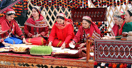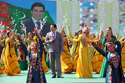 Ahal welaýaty, 21-nji mart (TDH). Türkmenistanlylar Halkara Nowruz baýramyny ählumumy ruhy galkynyş we şadyýanlyk ýagdaýynda uly gerim bilen bellediler. Şu bahar günlerinde bütin ýurdumyzda bolup geçýän dabaralar gadymy türkmen topragyny gül-läleleriň öwüşgini bilen şuglalandyrdy, ony aýdym-saz, gadymy däpleriň gözelligi bilen baýlaşdyrdy, bagtyýar çagalaryň şadyýan gülkülerini eçildi. Şu günler esasy wakalar däp boýunça ýaz ýagşyna ýuwulan ýaşyl begrese bürenen Ahalyň dag etegindäki jülgesinde geçirildi. Dabaranyň bolýan ýerine barylýan ýerler ýolyň iki gyrasy boýunça dürli öwüşginli baýdaklar bilen bezelipdir, baýramçylyga gatnaşyjylaryň we myhmanlaryň awtobuslary hem-de awtomobilleri geçýän ýoluň ugrunda haly düşelen topçanlar, öý haýwanlarynyň saklanylýan ýerleri, atarylan gazanlar bilen bezelen ak öýleri bolan ähli esasy alamatlary bilen döredilen türkmen obasy ýaýbaňlandy. Onuň aýratynlyklary hünärment ussahanalardan we özboluşly söwda tekjelerinden ybarat boldy. Şolaryň öňünde gadymy döwürlerde şäherleriň, ýurtlaryň we sebitleriň arasyndaky söwda gatnawlarynyň ugrunda ýüze çykan gündogar bazarlarynda bolşy ýaly, köp adamly durmuş gaýnap joşýar. “Ýaýla” meýdançasynyň baş girelgesiniň öňünde çagalaryň şowhunly topary halk oýunlary bilen meşgullanýarlar. Taýýarlanylýan dürli tagamlaryň hoşboý ysy ýaýraýar, dutaryň owazy, şadyýan aýdym-sazlar we gülküler ýaňlanýar. Bu ýere gelen dabara gatnaşyjylaryň arasynda Ministrler Kabinetiniň Başlygynyň orunbasarlary, Türkmenistanyň Mejlisiniň, ministrlikleriniň we pudak edaralarynyň, jemgyýetçilik guramalarynyň, biziň ýurdumyzda işleýän diplomatiki korpusyň ýolbaşçylary, dünýäniň dürli künjeklerinden gelen daşary ýurtly myhmanlar bar. Sebäbi Nowruz diňe bir baharyň gelmegi we ene topragyň oýanmagy däldir. Ol parahatçylygyň, adamlaryň arasyndaky ylalaşygyň, hoşniýetli goňşuçylygyň, halklaryň arasyndaky dostlugyň we düşünişmegiň jarçysydyr. Hut şunuň üçin hem adamzadyň ähmiýetli we gymmatly baýramçylyklarynyň biri bolan bu baýramçylyk 2010-njy ýyldan bäri Halkara Nowruz güni hökmünde bellenip geçilýär. Hoşniýetli goňşuçylygyň parahatçylygyň we ynsanperwerligiň asylly däplerini mynasyp dowam edýän türkmenistanlylar bu gadymy baýramçylygy agzybirlik hem-de jebislik ýagdaýynda garşylaýarlar. “Baharyň buşlukçysy bolan Nowruz baýramynyň medeni gatnaşyklary ösdürmekde tutýan orny örän uludyr. Biz XXI asyrda hem baý medeniýetimiz, milli ýörelgelerimiz bilen täze üstünliklere tarap ynamly öňe barýan ýolumyzda dünýäniň dürli halklary bilen medeni gatnaşyklaryň kämilleşmegine hyzmat eden Nowruz baýramynyň ajaýyp däp-dessurlaryny döwrebap öwüşginler bilen baýlaşdyrýarys” diýip, hormatly Prezidentimiz Gurbanguly Berdimuhamedow türkmen halkyny Milli bahar baýramy bilen Gutlagynda belledi. Türkmen toýy dürli öwüşginli, şadyýan we ajaýyp owazlary bilen ýaňlanýan ilkinji hereketleri bilen Nowruzyň—Täze günüň, Täze ýylyň gelip ýetendigini habar berdi. Köp adamly dabara goşulanlaryň ählisini çagyrmak bilen bereketli topragymyza Nowruzyň gelendigi hakynda şadyýan aýdym ýaňlanýar. Esasy aýdymçylaryň, aýdym-saz sungatynyň ykrar edilen ussatlarynyň we kämilleşýän ýaş sahna ussatlarynyň, meşhur tans we halk döredijigi toparlarynyň, şeýle hem Nowruz hakyndaky şygyrlary hem-de aýdymlary ýerine ýetiren ýaş artistleriň gatnaşmagy bilen aýdym-sazly-horeografiki çykyş ýaňbaňlanýar. Magtymguly adyndaky Milli sazly drama teatrynyň döredijilik toparlary we Türkmen döwlet medeniýet institutynyň talyplary bilelikde bu baýramçylygyň däpleriniň taryhyna degişli ajaýyp oýny görkezdiler. Teatrlaşdyrylan giriş oýny baýramçylyga gatnaşyjylaryň her biriniň ruhuny göterdi, adamlaryň ýüreklerinde agzybirlik we buýsanç duýgusyny oýardy hem-de türkmen halkynyň däpleriniň festiwalyny açdy. Ýurdumyzyň ähli welaýatlarynyň diken ak öýleri hut şu ýerde iň oňat aşpezler, aşhana sungatynyň ussatlary tarapyndan taýýarlanylan milli aşhananyň tagamlary, miweler we nazy-nygmatlar bilen örtülen jadyly saçaklar ýazylan merkezi ýodajyklaryň ugrundaky pawilionlar hem-de sahna meýdançalary bilen gezekleşip ýerleşýär. Ähli myhmanlara Nowruzyň esasy däp bolan tagamy, semeni hödürlenýär. Ahal welaýaty sazly-etnografiki oýny hödürläp, baýramçylyk çykyşlarynyň başy başlaýar, oňa sazly halk döredijilik çykyşlary, däp-dessur oýunlary girdi, onuň ýordum ugry “ak öýüň” oturdylmagy we gadyrly myhmanlary garşylamak däpleri boldy. Soňra Nowruzyň gadymy däplerine degişli kiçeňräk gurjak oýny görkezildi. Soň baýramçylyk dabarasyny Mary welaýaty kabul edýär, welaýatyň wekilleri öz çykyşlarynda keçe edilişini we Murgap jülgesinde baýramçylygy garşylamaga taýýarlanylyşyny görkezdiler. Balkan welaýatyndan gelen artistler ekerançylyga we zähmet däplerine bagyşlanylan özboluşly çykyşy taýýarladylar, ony küştdepdi tansy bezedi. Edebi ugur baýramçylygyň halk döredijiligi ugry bilen sazlaşykly utgaşdy, teatr artistleri görnükli türkmen nusgawy şahyrlarynyň keşplerini döretdiler, olaryň hatarynda Magtymguly, Mollanepes, Andalyp we başgalar bar, olaryň şygyrlary mähriban topragymyza ajaýyp waspnama bolup ýaňlandy. Soňra Lebap welaýatyna gezek ýetýär, welaýatyň artistleri öz çykyşlarynda Lebabyň ýaşaýjylarynyň Nowruzy garşylamak däpleriniň örän aýdyň aýratynlyklaryny görkezdiler, gowaça ekişine bagyşlanylan çykyş esasy çykyş boldy. Mälim bolşy ýaly, Ministrler Kabinetiniň 20-nji martda geçirilen mejlisinde hormatly Prezidentimiz Gurbanguly Berdimuhamedow Ahal