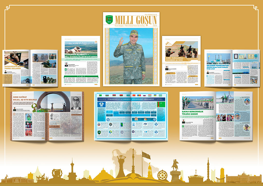 Türkmenistanyň Goranmak ministrliginiň «Milli goşun» žurnalynyň şu ýyldaky ikinji sany çapdan çykdy. Jemgyýetçilik-syýasy, harby-taryhy we ylmy-usulyýet neşir watandaşlarymyzyň ýaş neslini watançylyk ruhunda terbiýelemegi babatynda hem-de hormatly Prezidentimiz, ýurdumyzyň Ýaragly Güýçleriniň Belent Serkerdebaşysy goşun generaly Gurbanguly Berdimuhamedowyň başlangyjy hem-de ýolbaşçylygynda geçirilýän harby özgertmeleriň çäklerinde gazanylýan üstünlikleri beýan edýär. Žurnalyň nobatdaky sany Ahal welaýatynda tebigy gazdan benzin öndürýän zawodyň açylyş dabarasyna bagyşlanan makala bilen açylýar. Makalada aýratyn bellenilişi ýaly, şunuň ýaly senagat kärhanasy dünýäde ilkinjileriň biridir. Bu bolsa innowasiýalar ýoluna düşen ýurdumyzyň öňdebaryjylaryň hatarynda geljegi uly tehnologiýalary ulanýandygyny nobatdaky gezek görkezýär. Bu geljekde dünýäniň nebitgaz bazarynyň ösüşine oňyn täsirini ýetirer. Neşirde suratlar bilen bezelen nobatdaky makala ýurdumyzyň Ýaragly Güýçleriniň Belent Serkerdebaşysynyň 13-nji iýunda Milli goşunymyzyň taýýarlyk we söweşjeň ukybyny duýdansyz barlamak maksady bilen yglan eden harby-görkezme tälimlerine bagyşlandy. Bu reportaž okyjylary harby tälimleriň has möhüm pursatlary bilen tanyşdyrýar, oňa gatnaşyjylaryň teswirlemelerini öz içine alýar, şeýle hem goşunlaryň dürli görnüşleriniň we kysymlarynyň harby gullukçylarynyň dessin we sazlaşykly hereketlerini fotosuratlar arkaly beýan edýän wakalaryň jümmüşine aralaşmaga mümkinçilik döredýär. Žurnalda dünýä belli ahalteke bedewleriniň taryhyna hem-de «Türkmenistan — rowaçlygyň Watany» diýlip yglan edilen ýylda olaryň simwoliki ornuna bagyşlanan makalalar hem ýerleşdirildi. Awtor behişdi bedewleriň muşdagy — milli Liderimiz Gurbanguly Berdimuhamedowyň kitaplaryna salgylanyp, türkmen jemgyýetinde ahalteke bedewlerine sarpa goýmagyň däpleri hakynda pikir ýöredýär. Neşirde ýerleşdirilen giňişleýin makala harby žurnalistikanyň taryhyna hem-de onuň häzirki döwürdäki ösüşine bagyşlandy. Onda bellenilişi ýaly, goranyş häsiýetine eýe bolan Harby doktrina laýyklykda, Goranmak ministrligi Garaşsyz, Bitarap döwletimiziň abraýynyň we Milli goşunynyň pugtalandyrylmagyna işjeň ýardam edýär. Bu işde «Esger» gazeti, «Milli goşun» žurnaly hem-de adybir web-saýt, «Merdana nesiller» atly telegepleşik ýaly ýurdumyzyň habar beriş serişdeleri möhüm orun eýeleýär. Neşiriň nobatdaky sany alabaý tohumyndan bolan itleriň ähmiýeti barada pikir ýöredýän makala bilen dowam edýär. Hormatly Prezidentimiz Gurbanguly Berdimuhamedowyň serhet goşunlarynyň harby bölümine baryp görmegi makalanyň ýazylmagyna sebäp boldy, şonda döwlet Baştutanymyz harby gullukçylara alabaýyň güjüjeklerini sowgat berdi. Okyjylara Berdimuhamet Annaýew adyndaky 1-nji ýöriteleşdirilen harby mekdebiň hem-de ýurdumyzyň harby we hukuk goraýjy edaralarynyň ýokary okuw mekdepleriniň uçurymlary hakynda makalalar hem hödürlendi. Giň dünýägaraýyşly, hünärli serkerdeler bolmak bilen, olar Milli goşunymyzyň hatarlaryny artdyryp, edermen ata-babalarymyzyň harby däplerini mynasyp dowam ederler hem-de Garaşsyz, Bitarap döwletimiziň goranyş ukybynyň berkidilmegine mynasyp goşantlaryny goşarlar. Žurnalyň içki sahypasyny Garaşsyz Döwletleriň Arkalaşygy hem-de Türkmenistanyň bu halkara guramada eýeleýän orny bilen okyjylary tanyşdyrýan infografika bezeýär. Neşirde ýerleşdirilen makalalaryň biri ýurdumyzda giňden bellenilýän Ýeňiş baýramyna bagyşlanýar. Onda hormatly Prezidentimiz Gurbanguly Berdimuhamedowyň Beýik Watançylyk urşy ýyllaryny beýan edýän «Döwlet guşy» atly romany barada gürrüň berilýär. Žurnalyň nobatdaky sany çagyryş boýunça iki ýyllyk gullugyň çäklerinde harby gullukçylaryň hünär ussatlygyny ýokarlandyrmak üçin Türkmenistanyň Ýaragly Güýçlerinde döredilen mümkinçilikler barada gürrüň berýän makala bilen dowam edýär. Nobatdaky makalalar ýurdumyzyň ykdysady kuwwatyny pugtalandyrmakda Milli goşunymyzyň ornuny şöhlelendirýär. Şolarda harby tehnikalara özbaşdak hyzmat edýän, olar üçin ätiýaçlyk şaýlaryny, akkumulýatorlary, plastmassadan dürli önümleri öndürýän, harby lybaslary taýýarlaýan, maldarçylyk fermalaryny saklaýan hem-de dürli ýokumly önümleri öndürýän Goranmak ministrliginiň kärhanalarynyň üstünlikleri barada gürrüň berilýär. Milli ykdysadyýetimiziň berkidilmegine Territorial-goranyş goşunlary hem mynasyp goşant goşýar, olaryň harby gullukçylary ýurdumyzyň möhüm senagat desgalarynyň goragynda durýar. Žurnalda bellenilişi ýaly, hormatly Prezidentimiz Gurbanguly Berdimuhamedowyň gatnaşmagynda soňky döwürde dabaraly ýagdaýda açylan innowasion kärhanalaryň goragyny Watanymyzyň edermen esgerleri üpjün edýär. Olar asylly maksada gulluk etmek bilen, döwletimiziň ykdysady kuwwatyny artdyrmaga mynasyp goşant goşýarlar. Neşirde Myrat Garryýew adyndaky Türkmenistanyň Döwlet lukmançylyk uniwersitetiniň harby-lukmançylyk fakultetiniň üstünlikli işleri hakynda gürrüň berýän makala çap edildi. Bu ýokary okuw mekdebi bejeriş-öňüni alyş işi we sanitariýa-epidemiologiýa işi hünärleri boýunça harby lukmanlary taýýarlaýar. Žurnala halkara ynsanperwer hukugyna hem-de döwletara gatnaşyklaryň ösüşine bagyşlanan ylmy makala, şu asylly hünäri näme üçin saýlap alandygy baradaky sowala jogap beren harby gullukçylaryň söhbetdeşlikleri, şeýle-de, harby tehnologiýalary dünýäsinden gyzykly täzelikler hem girizildi. Žurnalyň tapawutly aýratynlygy — ýokary hilli fotosuratlar we infografika bolup, olar ýurdumyzyň Ýaragly Güýçleriniň Belent Serkerdebaşysy Gurbangu