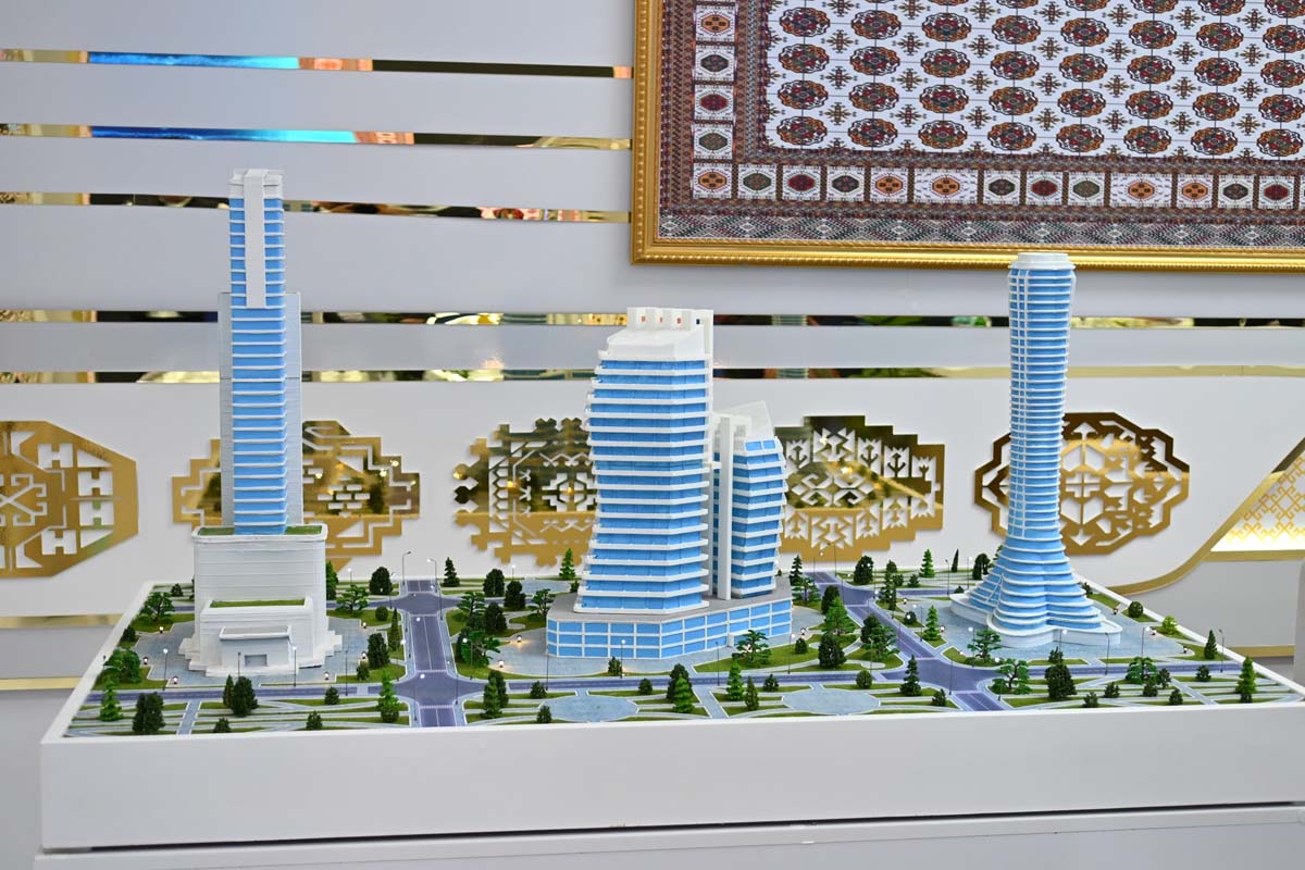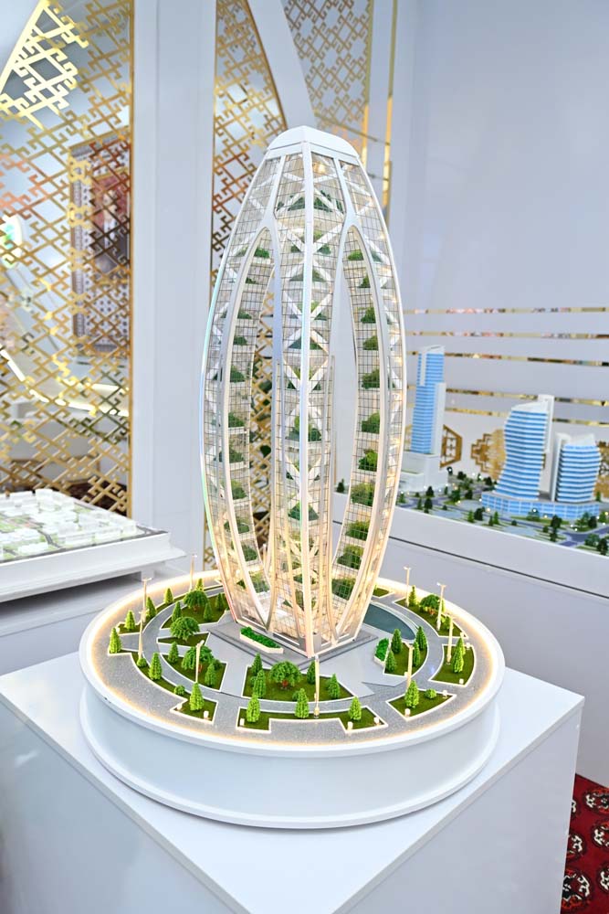 ...Sergi meýdançasynda ýurdumyzyň ministrlikleriniň, döwlet konsernleriniň, şol sanda Senagat we gurluşyk önümçiligi, Energetika, Gurluşyk we binagärlik ministrlikleriniň, «Türkmenhimiýa» döwlet konserniniň, Awtomobil ýollarynyň gurluşygyny dolandyrmak baradaky döwlet agentliginiň, ýerli we daşary ýurt kompaniýalarynyň özboluşly dizaýnly diwarlyklary ýerleşdirilipdir. «Akylly» şäher konsepsiýasy esasynda gurlan Arkadag şäheriniň sergi bölümi bu ýere gelýänleriň aýratyn ünsüni çekýär. Sergi diwarlygynda ýurdumyzyň «ýaşyl» gurluşyk ulgamynda ýeten belent sepgitleri beýan edilýär. Arkadag şäherinde milli binagärligiň iň gowy däpleri şäher gurluşygynyň we dizaýnyň häzirki zaman meýilleri bilen sazlaşykly utgaşýar.