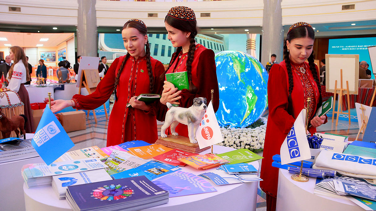 ...Ilki bilen, maslahata gatnaşyjylar Türkmenistanda hereket edýän diplomatik wekilhanalar we halkara guramalar tarapyndan guralan sergini synladylar.