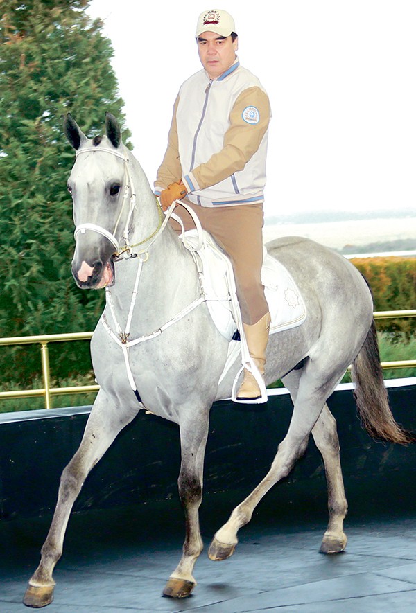 Türkmenistanyň Prezidenti sportuň dürli görnüşleri bilen meşgullanyp, ahalteke bedewlerine aýratyn sarpa goýýar we at üstünde gezim etmegi ileri tutýar. Ine, şu gün hem döwlet Baştutanymyz üsti ýapyk manežde Baýram han diýen bedewinde gezim etdi. Sagdynlygyň we ruhubelentligiň ýyly diýlip yglan edilen 2017-nji ýylyň ilkinji günlerinde bu toplumda taýçanak dünýä indi, hormatly Prezidentimiz oňa Ruhubelent diýip at dakdy. Bu gün taýçanaga bir aý boldy, ol özüni oňat duýýar we athananyň içinde şadyýan bökjekleýär. Döwlet Baştutanymyz türkmenleriň gadymy dessuryna eýerip, taýçanagyň boýnuna alaja dakdy we Ruhubelent atly taýçanagyň hem türkmen atçylyk sportunda, milli atçylykda mynasyp orun eýelejekdigine hem-de özüniň meşhur tohumynyň ýoluny dowam etdirmäge, ahalteke bedewleriniň şan-şöhratyny artdyrmaga saldamly goşant goşjakdygyna ynam bildirdi. Hormatly Prezidentimiz Gurbanguly Berdimuhamedowyň belleýşi ýaly, behişdi bedewler bahasyna ýetip bolmajak deňsiz-taýsyz gymmatlygymyz bolup durýar. Behişdi bedewler milli we dünýä medeniýetiniň gymmatlygy bolmak bilen, özleriniň tebigy gözelleri hem-de syrdamlylygy, wepalylygy bilen asyrlaryň dowamynda şahyrlar we suratkeşler üçin ylham çeşmesi bolup hyzmat edýär. Häzirki wagtda ahalteke bedewleri halkara sirk festiwallarynda we atçylyk sport ýaryşlarynda üstünlikli çykyş edýärler. Döwlet Baştutanymyzyň başlangyjy boýunça atçylyk sporty – konkur Aziada-2017-niň maksatnamasyna girizildi.