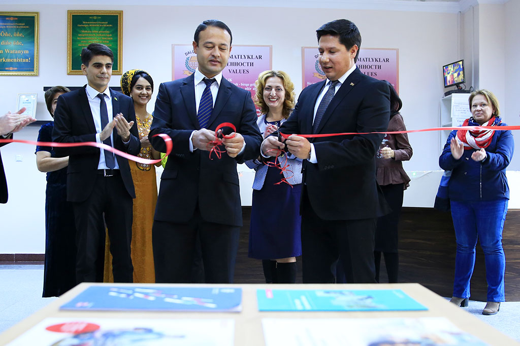 In the educational system of modern Turkmenistan, advanced approaches to learning foreign languages are being introduced at all levels of education; and methods of teaching are being improved. Private companies make their contribution to the development of the country’s educational system. A vivid example to that is Dalchyn Private Enterprise that provides services in language teaching, theory and practice of translation. To implement modern approaches to learning foreign languages, Dalchyn Private Enterprise has signed a cooperation agreement with the University of Cambridge, which allowed the Turkmen company to become the first official distributor of teaching materials of this leading British University in Turkmenistan. The opening of the first store offering licensed literature of the University of Cambridge is a result of this productive partnership. The customers will have access not only to teaching and educational materials, but also to fiction and specialized literature in English, including manuals on aviation, oil and gas, tourism industry etc. The opening ceremony of the bookstore was attended by representatives of the British Embassy in Turkmenistan, teachers of Dalchyn Education Center and its numerous language students. Every textbook comes with a CD containing texts read by professional speakers with classic pronunciation and accent. Sets also include videos that help explore the theory and apply it practically. Besides the bookstore, Alty Alaf thematic café was opened as well. The place is decorated with different pieces reflecting the English culture. Immersing into the atmosphere of Misty Albion, language students will have a chance to relax after classes and try British cuisine, snacks and desserts cooked by professional chefs, and enjoy dozens of coffee varieties. The building also hosts a Resource Center where students have free access to books, movies and other aids, and can discuss acquired information. This allows them to immerse deeper into the atmosphere of the language they are learning. It is worth mentioning that cooperation with international educational institutions is expanding with foreign specialists and native speakers being invited to conduct practical lessons with students and staff of the Center. Immediate plans include organizing extensive English courses with participation of lecturers from the University of Cambridge. Unique feature of classes offered at the Center is that they are aimed at creating a special atmosphere that facilitates retention of acquired knowledge through establishing a dialog in a foreign language between learners. Groups do not exceed 15 students, allowing the teacher to give attention to every trainee. The main task that teachers of the Center have set for themselves is effective language teaching in a short term with individual approach to every student. For instance, the English program for beginners is divided into six stages and takes approximately 18 months. More advanced students may be offered a shortened program. With due diligence, students who have completed all stages will have acquired knowledge and experience that will allow them to sit IELTS test that is required for employment, or admission to foreign universities. Considering the peculiarities of perception of foreign languages by different age groups, courses are intended for three categories of students: 7-12, 13-19 and 20 years and above. Children are taught in a playful manner, with quiz games, competitions and techniques for easier language learning. These days the Center has announced the admission to winter courses of Turkmen, English, Russian, German and French.