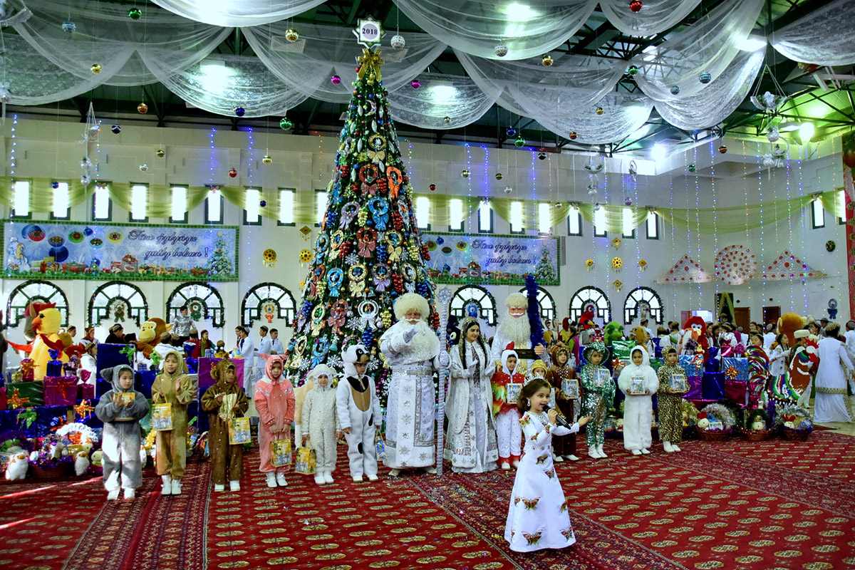 By an existing good tradition, in anticipation of the incoming New Year, there was a festive event in “Döwletliler köşgi” (in the Orphan Palace), where foster-children were presented gifts on behalf of President Gurbanguly Berdimuhamedov. All-round concern for the young generation of Turkmenistan is one of the most important social policy aspects of the Turkmen leader. Our country creates all conditions in order to provide kids a happy childhood. Thanks to such reverent treatment, our children, including the children of the “Döwletliler köşgi”, have the opportunity to develop their skills. Young talents take the most active part in prestigious competitions and festivals in the country and abroad. The decoration of this New Year’s festivity in the “Döwletliler köşgi” was a great concert at a fluffy gorgeous New Year tree, sparkling by multicolored tinsel, garlands and lights, which gathered pupils and teachers of the Palace. The joy of children was also shared by numerous guests – representatives of the ministries of education, culture, public organizations, Ashgabat khyakimlik that helped to organize the event. Popular musicians, artists as well as the favorite fairy-tale characters visited children. And traditionally, the kind fairy Ayaz baba and his granddaughter Garpamyk took the central place in the performance. Members of the dance bands “Joshgun” from “Döwletliler köşgi”, “Ruhubelent chagalar”, “Gyzyl guljagaz” delighted the audience as well as the “Shatlyk” group of Children and Youth Palace. In order to celebrate the occasion, young spawns, dressed in colorful costumes, reeled friendly around the New Year tree to the fiery songs of famous singers of the country. Children were particularly impressed by the vivid acts with participation of trained animals, jugglers’ performances, hilarious skits of funny clowns of the “Shovhun” circus group. At the end of the celebration, the “Döwletliler köşgi” pupils expressed their gratitude to President Gurbanguly Berdimuhamedov for the wonderful gifts and happy peaceful childhood, conveying the best wishes and congratulations on the incoming New Year.