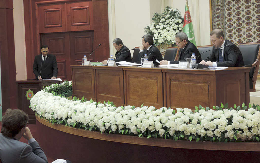 The conference hall of the Palace of Justice hold scientific and practical conference “Development of the Statehood, Legal System and Democracy in Neutral Turkmenistan” timed to the 10th anniversary of the foundation of the Institute of State and Law under the President of Turkmenistan. Heads of diplomatic missions and international organizations accredited in our country, Turkmenistan ambassadors overseas, scientists of the Academy of Sciences and branch research institutes, students of the Academy of State Service under the President of Turkmenistan, specialists of the ministries and departments, professors and lecturers of number of high educational institutes, representatives of non-governmental organizations and mass media took part in the forum. Subjects of the development of national legislation in accordance with international legal standard, intensification of democratic processes and consolidation of human rights in our country, achievement of the Goals of sustainable development by modernization of education, science, diplomatic practice and other have been brought in the agenda. Large-scale transformations aimed at further improvement of legislation systems are carried out in Turkmenistan under the leadership of the Head of the State. Resolutions on energy security and transport sphere initiated by Turkmen leader and adopted by the United Nations General Assembly as well as the Resolution of Strengthening the links between all modes of transport to achieve the Goals of Sustainable Development that was also unanimously adopted by all United Nations members indicate deserving contribution of our country to the development of international law. Appropriateness of the subjects of the conference is related with further development of free market that stipulates greater involvement of the citizens and legal entities in legal relations, with increment of the investment volumes to economic and social sphere. Scientific studies in legal system are very important practical significance for law making and law enforcement practices, scientific interpretation of the provisions of national legislation. The Institute of State and Law under the President of Turkmenistan founded by the Resolution of the Head of the State on December 26, 2007 is fruitfully working on these subjects for ten years already. Scientific and research practice experience gained for all these years indicates the formation of national jurisprudence school with big potential. All achievements of our country in political, economic and social spheres are logical result of constructive constitutional construction. The participants noted that these successes are related with far-sighted policy of the Head of the State and consistency of the moves toward strategic targets. Realization of civic rights is closely related with the development of the statehood. Turkmenistan formed legal system based on the course toward the improvement of the efficiency of legal regulation of social relations for protection rights and freedoms of individual, state sovereignty and provision of national interests in the world arena. Legal system of our country is aimed at the improvement of life level of the population in harmonic combination with international law standards. Acting Permanent Coordinator of the United Nations and Representative of the UN Development Programme in our country Vitaliy Vremish highlighted in his speech during the forum that the UN welcomes the provisions of new edition of the Constitution of Turkmenistan, which guarantee the equality, protection of right and freedoms of people. Our country with developed election system adopted number of important laws on the elections at different government level including integrated Election Code, established strong legal institutes that became the factors of consolidation of democracy. Today, cooperation of Turkmenistan with the UN has a character of strategic partnership including in the development of civic freedoms, V. Vremsih noted. The United Nations Organization is interested in further fruitful cooperation with our country for protection of peace and stability in the region and on the planet. Head of the Organization for Security and Cooperation in Europe (OSCE) in Ashgabat Nataly Drozd highlighted that modern condition of election system, legal institutes and national legislation visually demonstrate practical activities of Turkmenistan aimed at the improvement of election process, improvement of human rights and freedoms and bringing of it to the correspondence with international standards. Taking into account reached successes, the Centre is interested in further consolidation of the cooperation with our country in all spectrum of the activity of the OSCE. Authorized Representative on human rights in Turkmenistan made a speech at he forum of the subjects of legal guarantees of human rights and harmonization of national practice and international principles. It was highlighted that wide opportunities for active participation of young scientists in the researches of democracy and rights sphere have been made recently. The participants noted the importance of legal education and culture as well as the role of Government organizations in realization of the rights and freedoms of the citizens declared by the Main Law. The Constitution of Turkmenistan has huge potential being solid and flexible base of national legislation system. The Main Law is to provide both the sustainability and dynamics of political, social and economic growth of the country. Constitutional principles take important place in the activity of modern legal state, its institutes, political parties, non-governmental associations and every citizen. While being logical result of stable social and economic development of the country, the realization of human rights and freedoms supports the strengthening of humane principles in Turkmen society. It corresponds with constitutional objectives of the state – 