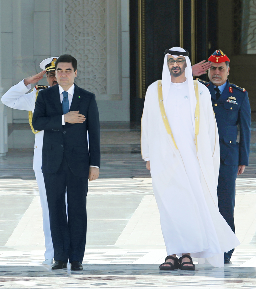 The capital of the United Arab Emirates hosted talks between the President of Turkmenistan, Gurbanguly Berdimuhamedov, and the Crown Prince of Abu Dhabi, Deputy Supreme Commander of the UAE Armed Forces, Sheikh Mohammed bin Zayed Al Nahyan. A day earlier, on 14 March, President Gurbanguly Berdimuhamedov met in Abu Dhabi with the Vice President and Prime Minister of the United Arab Emirates, Ruler of the Emirate of Dubai, Sheikh Mohammed bin Rashid Al Maktoum, and the UAE Deputy Prime Minister, Minister of Presidential Affairs, Sheikh Mansour bin Zayed Al Nahyan. Today the official welcoming ceremony for the distinguished guest and bilateral talks took place at the Presidential Palace. The Crown Prince of Abu Dhabi, Deputy Supreme Commander of the UAE Armed Forces, Sheikh Mohammed bin Zayed Al Nahyan, stressed that his country attaches great importance to this visit by the President of Turkmenistan in the context of further comprehensive strengthening of bilateral ties. It was also emphasized that the UAE highly appreciate the constructive foreign policy course pursued by neutral Turkmenistan and creative initiatives put forward by its national leader that are widely supported and recognized by the global community. The President of Turkmenistan also noted that the Turkmen side regards this high-level meeting as an important event in the history of traditionally friendly interstate relations. Cooperation between Turkmenistan and the UAE built both on bilateral level and within the framework of international organizations is characterized by the high level of mutual understanding and close partnership. President Gurbanguly Berdimuhamedov noted that our countries have sufficient capacities for stepping up joint efforts to achieve sustainable development in the region and around the globe, and expressed his belief in the availability of positive options for increased mutually beneficial cooperation in various spheres. Joint Committee on Cooperation plays a major role in strengthening Turkmen-Emirati relations. In this context, President Gurbanguly Berdimuhamedov spoke in favor of holding regular consultations between delegations of the two countries with a view to enhancing the mutual export and import potential, increasing the trade turnover and intensifying economic partnership. As is known, Turkmenistan and the United Arab Emirates are among the richest countries of the world in terms of natural reserves, which creates opportunities for effective combination of efforts in fuel and energy sectors, offers wide prospects for cooperation in production and processing of oil and gas and taking energy resources to global markets. Dwelling on that, the Turkmen leader invited major companies, UAE’s investment and financial structures to cooperate in implementation of the recently launched second phase of construction of the Turkmenistan–Afghanistan–Pakistan–India gas pipeline, and expressed his conviction that such partnership will promote further strengthening of mutually beneficial ties. Turkmenistan and the UAE also place a special focus on development of construction and chemical industry, which enables the countries to outline new forms of cooperation in these areas. Facilitating contacts in producing construction materials and chemical products appears quite promising. One of important vectors of the interstate partnership is a strategically important transport sphere. Taking into account the favorable geographic location of Turkmenistan and the UAE, cooperation for creation of international transport and communication corridors, joining potentials to establish a multiple-vector transport infrastructure appears reasonable. Humanitarian sphere invariably remains an integral part of Turkmenistan-UAE relations. Wide possibilities exist for reinforcement of effective cooperation in science, education, culture, art and creation. It is also necessary to develop contacts to study the rich historical and cultural heritage of the peoples of the two countries. The sides also exchanged views on a range of important aspects of international politics and noted the proximity or accordance of approaches of the two countries towards priority issues of regional and global agenda, specifically those related to securing global peace, security and progressive development. President Gurbanguly Berdimuhamedov thanked the Crown Prince of Abu Dhabi for increased focus on development of the interstate partnership and invited Sheikh Mohammed bin Zayed Al Nahyan to Turkmenistan for an official visit at any convenient time, expressing his conviction that this visit would open a new page in the history of relations between Turkmenistan and the United Arab Emirates.