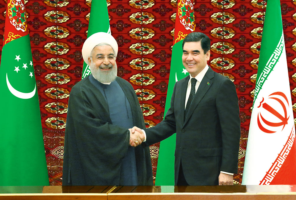 President of the Islamic Republic of Iran Hassan Rouhani arrived in Turkmenistan on the official visit. The Head of the Islamic Republic of Iran was met by the officials at Ashgabat International Airport decorated with the State Flags of both countries. The Guard of Honour was lined up along the carpet running from the ramp. According to good tradition, boys and girls wearing national dress met Iranian Leader with bread and salt and presented the flowers. From the airport, the President of the Islamic Republic of Iran went to the residence, which was allocated in the capital fashionable hotel “Oguzkent” In the morning, the high-rank guest escorted by the motorcycle cortege went to the Square of Independence located in the heart of Ashgabat where he was cordially welcomed by President of Turkmenistan Gurbanguly Berdimuhamedov. Having shaking hands, the Leaders of two countries went to the special podium. The official meeting ceremony took place on the square. The official meeting ceremony started with the report of the commander of the Guard of Honour. National Anthem of the Islamic Republic of Iran and Turkmenistan was played. Presidents Gurbanguly Berdimuhamedov and Hassan Rouhani went along the line of the soldiers. Turkmen leader introduced the members of Turkmenistan official delegation to his Iranian colleague. The President of the IRI also met with the heads of diplomatic corps accredited in our country. In his turn, the Head of neighbouring state introduced the members of the Iranian Government delegation to the President of Turkmenistan. In the end of the ceremony, the soldiers of the Guard of Honour marched along the Square of Independence. After, the Leaders of two countries went to the Ruhyet Palace where after the ceremony of joint photographing on the background of the State Flags of Turkmenistan and the Islamic Republic of Iran, high-level Turkmen – Iranian talks took place in narrow format. Warmly greeting President Hassan Rouhani on Turkmen land and having expressed the gratitude for accepted invitation to visit Turkmenistan, President Gurbanguly Berdimuhamedov highlighted high level and constructive character of the interstate dialog. Having expressed the confidence that this high-level meeting would give strong impulse to further expansion of fruitful Turkmen – Iranian cooperation, the President of Turkmenistan also noted that our countries successfully develop the partnership both in bilateral and multilateral formats under competent international organizations and structures rendering mutual support to each other. Turkmenistan and Iran demonstrate proximity of views concerning priority regional and global range of problems where the objectives for provision of peace, security and stability, consolidated activities against the threats and challenges of the modern world gain special importance. Both states stand for the consolidation of positive cooperation in Caspian Sea and for the improvement of its status as the sea of peace, friendship and harmony. Speaking of this, President Gurbanguly Berdimuhamedov also spoke for the continuation of the practice of regular consultations between foreign departments of two countries. Having highlighted the presence of considerable potential for the intensification of Turkmen – Iranian cooperation in all directions like in economy, trade and humanitarian sphere including in education, science and culture, sports and tourism, the Head of the State expressed sincere gratitude to high-rank guest for his large persona contribution to the development of the interstate relations. Having expressed the gratitude to his Turkmen colleagues for the invitation to pay official visit to Turkmenistan and for cordial hospitality, President Hassan Rouhani noted that he is glad to visit Ashgabat in the period of Nowruz celebration. Having addressed President Gurbanguly Berdimuhamedov and all Turkmen people with warm congratulations and best wished on occasion this beautiful spring holiday, high-rank guest highlighted that historical and cultural similarity connecting our countries serves as a solid base for the development of the interstate dialog. Having confirmed invariable commitment of Iran to traditionally friendly relations with Turkmenistan, President Hassan Rouhani noted that today, wide opportunities for the activation of Turkmen – Iranian relations are opening in all spectrum. In particular, there are good perspectives for the cooperation in transport sphere where the Sides have already accomplished joint project of construction of transnational railroad. Successfully cooperating in international format, the Sides demonstrate the proximity of the approaches to number of key regional and global issues. Having expressed the confidence that current meeting in Ashgabat would give new stimulus and content to the interstate relations, the Head of the IRI addressed the wishes of prosperity and success to fraternal people of Turkmenistan. Continuing the talks, the leaders of two countries discussed wide range of the objectives of Turkmen – Iranian cooperation and specified its priority directions in the context of the implementation of the achieved agreements. Having spoken for the increment and diversification of beneficial trade and economic relations, President Gurbanguly Berdimuhamedov and Hassan Rouhani also noted the importance of the stimulation of cultural and humanitarian subjects, which are an integral part of the interstate dialog. During the meeting, the Sides exchanged the visions of number of topical issues of regional and global agenda that present mutual interest, having confirmed the willingness to further constructive cooperation in international arena. President Hassan Rouhani invited President Gurbanguly Berdimuhamedov to pay official visit to the Islamic Republic of Iran. The invitation was accepted with the gratitude. The time of the visit is to be coordinated through diplomatic channels. After, the negotiations