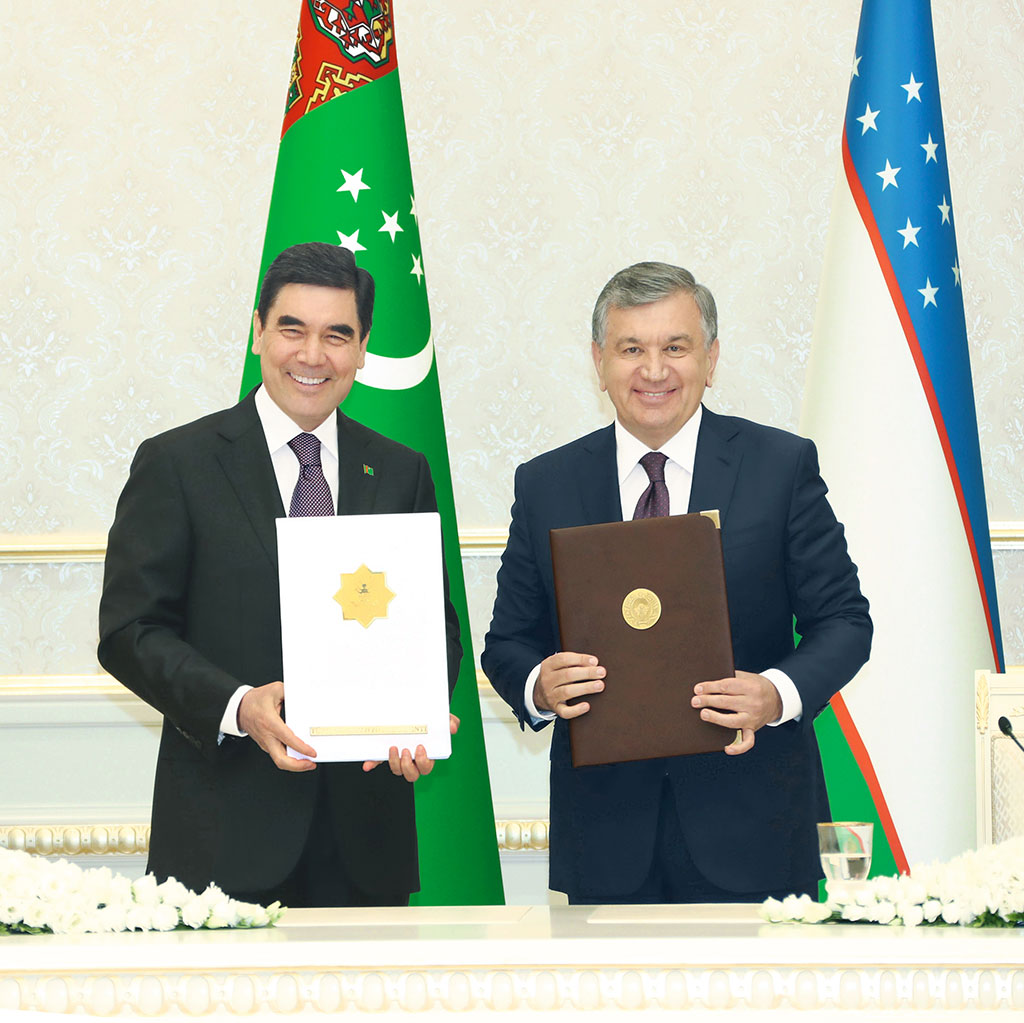 Bilateral documents were signed by the outcomes of Turkmen – Uzbek high-level talks in Tashkent. The Programme of cooperation in transport sphere in 2018 – 2020 and the Programme of Scientific and Technical cooperation in 2019 – 2020 were adopted on inter-governmental level. The Agreement on Sanatorium and Health improving treatment of children in Avaza National tourism zone was signed. The Government and Turkmenistan and the Government of Uzbekistan also signed the Memorandum on AN transit and Agreement on interregional cooperation. The Protocol on Amendments and Addendums of the Agreement on crossing Turkmen – Uzbek Border by people servicing the facilities located in frontier zones of November 2014 was signed. The Programme of cooperation for 2019 between the Ministries of Foreign Affairs, the Agreement on establishment of Trade Houses of Turkmenistan and the Republic of Uzbekistan, Memorandum of Understanding on cooperation in sport sphere, Agreement on cooperation in quarantine of plants, Agreement on establishment of Business Council were adopted on the level of ministries and departments. The Protocol on approval of the Action Plan for cooperation in standardization in 2018 was signed. The Institute of Strategic and Sustainable development of the Ministry of Finances and Economy of Turkmenistan and the Institute of Strategic and Interregional Studies under the President of the republic of Uzbekistan signed the Memorandum of Understanding. It is remarkable that number of bilateral documents was supplemented by the memorandums between non-governmental organizations of both countries – youth, trade union and women associations. Presidents Gurbanguly Berdimuhamedov and Shavkat Mirziyoyev adopted Joint Statement. The Agreement between the Ministry of Communication of Turkmenistan and the Ministry of Development of Information Technologies and Communications of the Republic of Uzbekistan on technical renewal of radio frequencies and Memorandum on Cooperation between Turkmenistan State Committee for Television, Radio and Cinematography and National TV and Radio Company of Uzbekistan were also signed under the state visit of the head of Turkmenistan to Uzbekistan. Besides, the signing of the Memorandums and Agreements on cooperation were signed between the following educational institutes of two countries: Oguzkhan Engineering and Technology University of Turkmenistan and Bukhara Engineering and Technology Institute; Turkmenistan State Energy Institute and Tashkent Islam Karimov State Technical University; Turkmen State Institute of Transport and Communications and Tashkent Institute of Road Project Planning, Contraction and Exploitation; Turkmen Agricultural University and Tashkent State Agrarian University; Turkmen Agricultural University and Tashkent Irrigation and Melioration Institute; Turkmen Agricultural Institute and Tashkent State Agrarian University; Turkmen State Agricultural Institute and Samarkand Agricultural Institute; Turkmen State Institute of economics and Management and Tashkent State Economic University; International Oil and Gas University and Tashkent State Technical University; Turkmen State Financial Institute and Tashkent State Institute; Seyitnazar Seydi urkmen State Pedagogical Institute and Bukhara State University; Dovletmammed Azadi Turkmen National Institute of World Languages and Uzbek State University of World Languages; Institute of Municipal Services of Turkmenistan and Tashkent Architecture And Construction Institute.