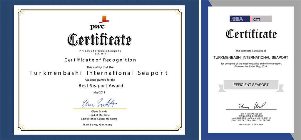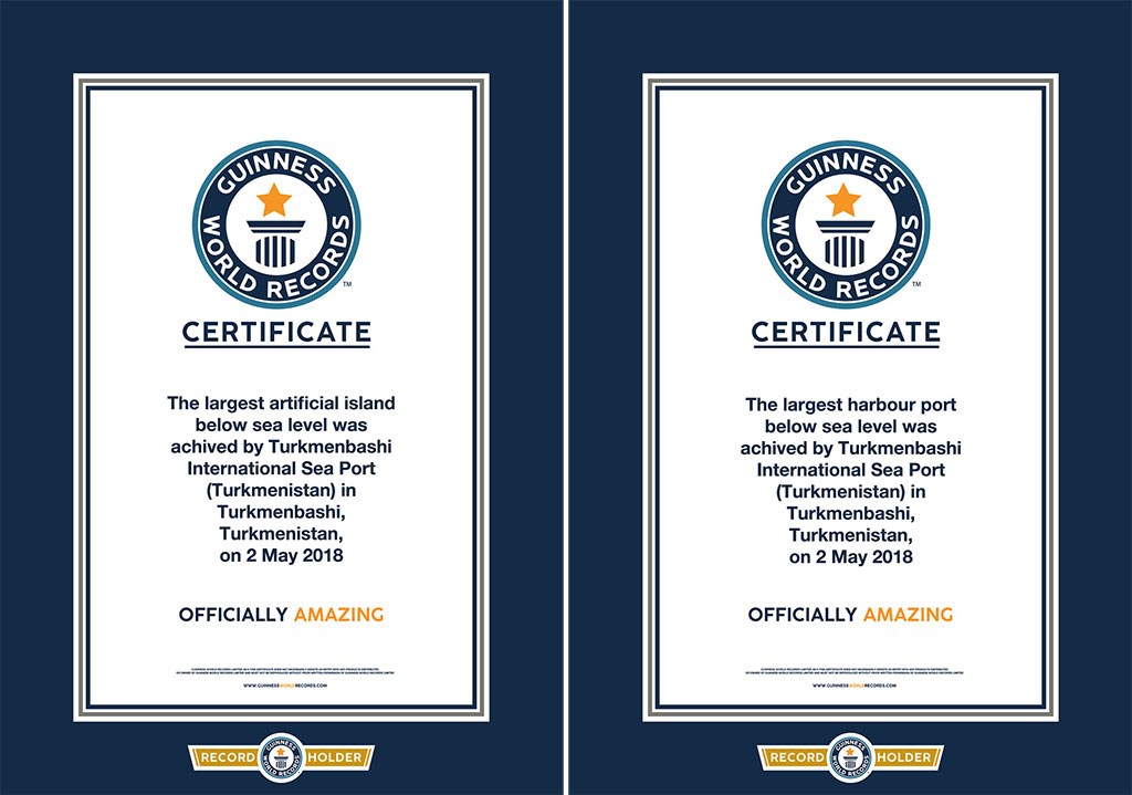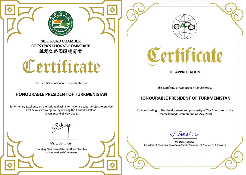 Certificate and prize award ceremony to new Turkmenbashi port by the experts of different organizations took place at international transport forum held in Avaza. President of Turkmenistan Gurbanguly Berdimuhamedov received special awards as initiator of the project of Turkmenbashy International Seaport. By conferring of these awards, the Silk Road Chamber of International Commerce (SRCIC) and Confederation of Asia-Pacific Chambers of Commerce and Industry (CACCI) expressed the support of integrational transport projects of Turkmenistan that enhances the convergence of the East and the West through the revival of the Silk Road. New seaport was also awarded with the prize of international consulting company «PricewaterhouseCoopers» and German logistic and transport company «Hamburger Hafen und Logistik AG» and with the certificate of Zealand Seaports company operating container terminal in Hamburg port and Dutch ports. The port was also entered to the Guinness World Record Book as the biggest port below the sea level. Artificial bird island built during port construction for preservation of ornithological fauna was also included to the same category as the biggest manmade island below the seal level. The awards for contribution to environmental and birds protection during construction of Turkmenbashi Seaport were presented from Max Plank Ornithology Institute (Germany) and Vienna University. President Gurbanguly Berdimuhamedov expressed the gratitude to the management of international organizations for warm words addressed to Turkmenistan. The Head of the State noted that our country highly appreciates the willingness of competent structures to cooperation as well as substantial and positive approach to important and topical subjects of the forum agenda. The Head of the State expressed the confidence that the fact of gathering of current International forum and the interest demonstrated by politicians, specialists, experts and media speak of the importance that the idea of the revival of the Silk Road receive in modern conditions. In this aspects, the perspectives are opening not only in trade, economy, investments but also in politics, culture, humanitarian relations, in consolidation of friendship and cooperation between the countries and nations. Current meeting is to support these processes and to become one of the grounds where exchange of opinions take place, new constructive models of cooperation are elaborated and valuable professional relations are established, Turkmen leader noted. This is very important for further practical work.