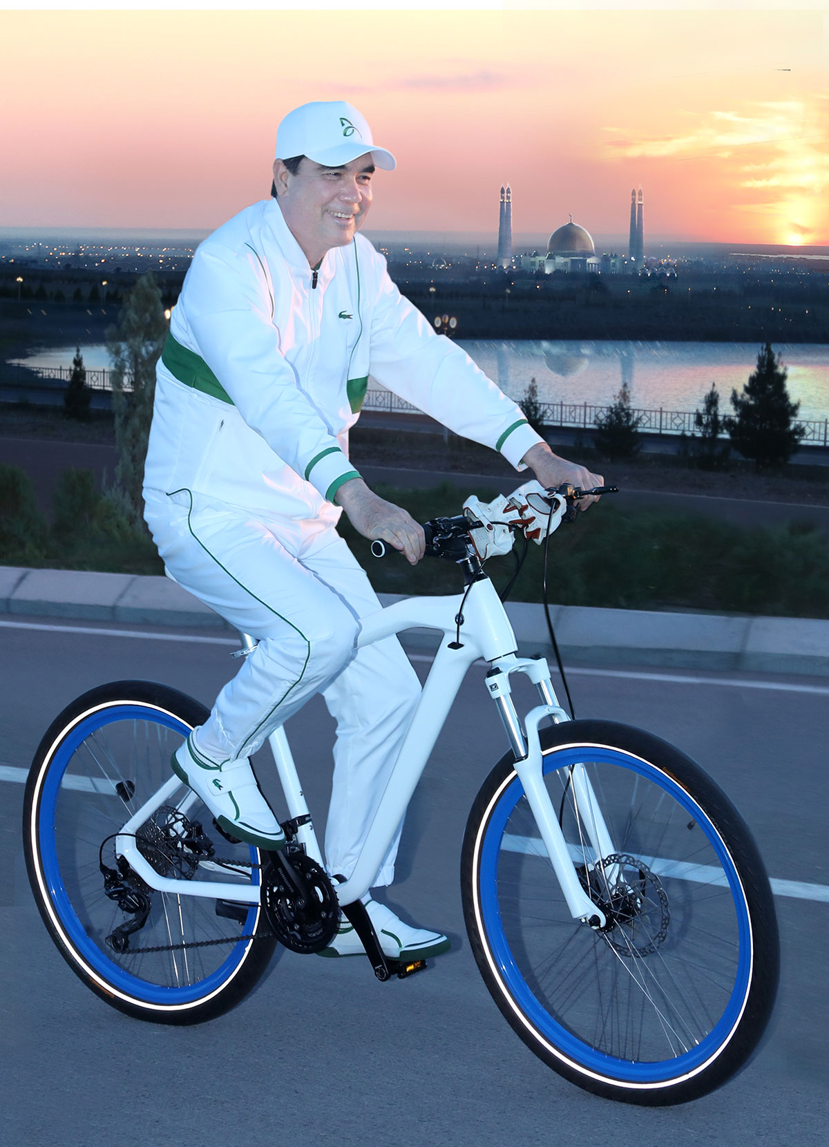Saturday working day of the President of Turkmenistan was forestalled by cycling ride – early in the morning, the Head of the State made cycling ride from the Kopetdag foothills to the centre of the capital. During the ride, President Gurbanguly Berdimuhamedov looked around the amenities of the capital’s outskirts, condition of manmade green zones which are supplemented every year with new trees. The Head of the State arrived to the place where the Path of Health running along the mountain ranges of the Kopetdag finishes. In last several years, the Path of Health turned into one of the most visited place of Ashgabat. Numerous supporters of healthy life style regularly make the ascent along the Path. After, the President of Turkmenistan continued his ride along Archabyl Avenue where business centre of the capital is formed up. At present, new facilities are built there by old partner of Turkmenistan – famous French company Buig Batiman. After, the ride of the Head of the State ran along Bitarap Turkmenistan Avenue and reached the Square of Independence. Thus, early in the morning, President Gurbanguly Berdimuhamedov made cycling ride, having covered 30 kilometres to his work place. The head of the State finished his ride at the State Tribune and went to Oguzkhan Palace Complex. Being supported and active populariser of healthy life style, the President demonstrates excellent example to be followed by the compatriots, first of all by the youth. Owing to the attention of the Head of the State to the development of sports in the country, Turkmen athletes received excellent training base and confidently compete at prestigious international tournaments. At present time, National team trains for the main sport event 0 XXXII Summer Olympic Games in Japan in 2020. Turkmenistan also hosts big competitions. Their successful organization was highly appreciated by competent sport organizations, which keep making numerous proposals on various competitions in our country. Organization of some competitions has already been planned for 2019 – 2020. At present moment, preparation to the World Powerlifting Championship in November of this year is carried out. The competition will be held next to the Olympic village. Amul – Hazar 2018 desert race is among the next big international events. Qualification round of the competitions has been taken place recently where Turkmen participants of the race were defined. The Head of the State took part in qualification competitions, having personally tested the track on sport vehicle and demonstrated outstanding result.