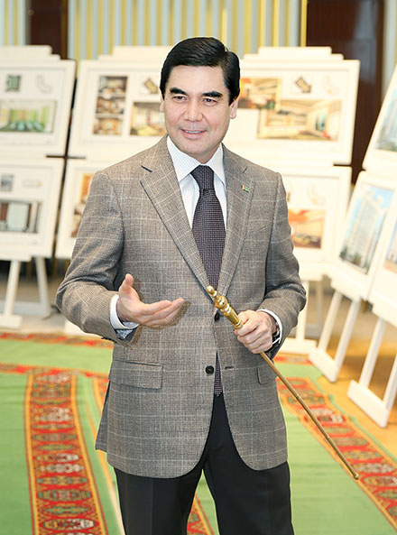 On February 17, President of Turkmenistan Gurbanguly Berdymuhamedov visited the Olympic Park under construction in the Turkmen capital to get acquainted with the construction progress of this large complex of sports facilities, as well as with projects of a number of its objects. The unique complex, being constructed on the initiative of the head of Turkmen state, includes more than 30 sports facilities and other purpose objects. As is known, its solemn foundation stone laying ceremony took place in November 2010 with participation of the head of state. Competitions of the V Asian Indoor Games and Martial Arts in the Turkmen capital in 2017 are to be held in the arenas of the Olympic Park. The head of state started his get-acquainted tour to the complex, with a visit to one of its objects - a 450-bed modern hotel. Apart from comfortable rooms, the architecturally original building boasts conference halls, designed to seat a different number of people, restaurants, cafe, shops, a hair salon, a fitness studio, saunas, indoor and outdoor swimming pools, and etc. Modern services, including health spa will be at the disposal of guests. Upon entering the hotel, the nation’s leader examined a hall on the first floor, where clipboards with project designs of the Olympic Park buildings and facilities had been installed. A video film about the construction of the Olympic Park and its objects was shown on the screen installed in the foyer to give visual demonstration of the multi-purpose sports complex. The President of Turkmenistan was also offered to watch an animated film dedicated to the Torch Relay of the V Asian Indoor Games and Martial Arts, as one of the main symbols of the Games. The route of the Torch Relay for the 2017 Asian Games, (the flame lighting ceremony will take place at the “Galkynysh” gas field - one of the world’s largest natural gas fields) will pass through various parts of our country, and its areas of unique interest. By means of different modes of transport - overland, air and sea – the Flame for the Games will cross the entire country and complete its journey in the Turkmen capital - white marble Ashgabat, where an impressive welcome ceremony will take place. Then, the nation’s leader got acquainted with project designs of the Olympic Park facilities, as well as a complex of buildings planned for construction in the capital. The General Plan of the 1st, 2nd and 3rd phases of the Olympic Park construction, as well as project designs of a number of facilities, residential complexes for athletes, a social and cultural center, a new 45,000-seat Olympic Stadium, a 4,000-seat indoor tennis court, including layout plans, facade details, exterior and interior designs of building and facilities were presented for consideration by the head of state. Project designs of the Olympic Stele were submitted for consideration by the nation’s leader as well. Besides, the President of Turkmenistan familiarized himself with the project of a 5,138-meter monorail with stations and relevant technical infrastructure, as well as exterior and interior designs of a train. Speaking of the features of this mode of transport, the head of state assigned to study the issues related to the use of monorail roads in other regions of the country, particularly, in the “Avaza” National Tourist Zone (which is being formed on the coast of the Caspian Sea), and to prepare the relevant project. Draft designs of the Olympic torch, different medals for awarding winners, the 2017 Asian Games mascot, and a wide variety of souvenirs with symbols of the Games - badges, knitwear, booklets, etc., and sportswear were demonstrated as well. The presented designs reflected creative search of designers, who seek to enrich them with national symbols, among which is an octagonal star of Oguzkhan. After becoming acquainted with the presented samples, the nation’s leader expressed a number of remarks. Then the President of Turkmenistan gave consideration to project designs of a new building of the “Nusay” Hotel, located in the center of Ashgabat, as well as a green area, fountains and other facilities planned for construction in the territory of the hotel complex. The projects prepared by the Industrialists and Entrepreneurs Union of Turkmenistan were also submitted for consideration by the nation’s leader. Among them were projects of a restaurant proposed to be built in the picturesque ravine in the foothills of the Kopetdag, and a number of other objects. In particular, the second floor of the new two-story restaurant will have an open terrace; this will give visitors an opportunity to admire the beauty of the scenery. Among other proposals of the Union are projects of a new building of the capital’s shopping complex, which will house shops specializing in food products, the “Rysgal” Joint Stock Commercial Bank”, a business center, a shopping center, and residential buildings. Then the President went up in an elevator to the second floor of the hotel, which accommodates a restaurant, a café and two conference halls. In one of the conference halls, the President of Turkmenistan conducted a working meeting on the issues of the 2017 Asian Games with relevant executives. The nation’s leader commissioned the State Sports Committee and the National Olympic Committee to systematically send athletes abroad for training activities and to organize the work of experienced foreign coaches in special sports on a contractual basis. Pending the subject, the head of state instructed the khyakimlik of Ashgabat city to ensure the preparation and placement of billboards and other advertising aids, devoted to the upcoming Games. Having focused on the importance of organizing special training seminars to improve the skills of volunteers to be engaged in the 2017 Asian Games, the head of state also assigned the staff of the Ministry of Education to prepare phrase books, dictionaries, including sports ones, specia