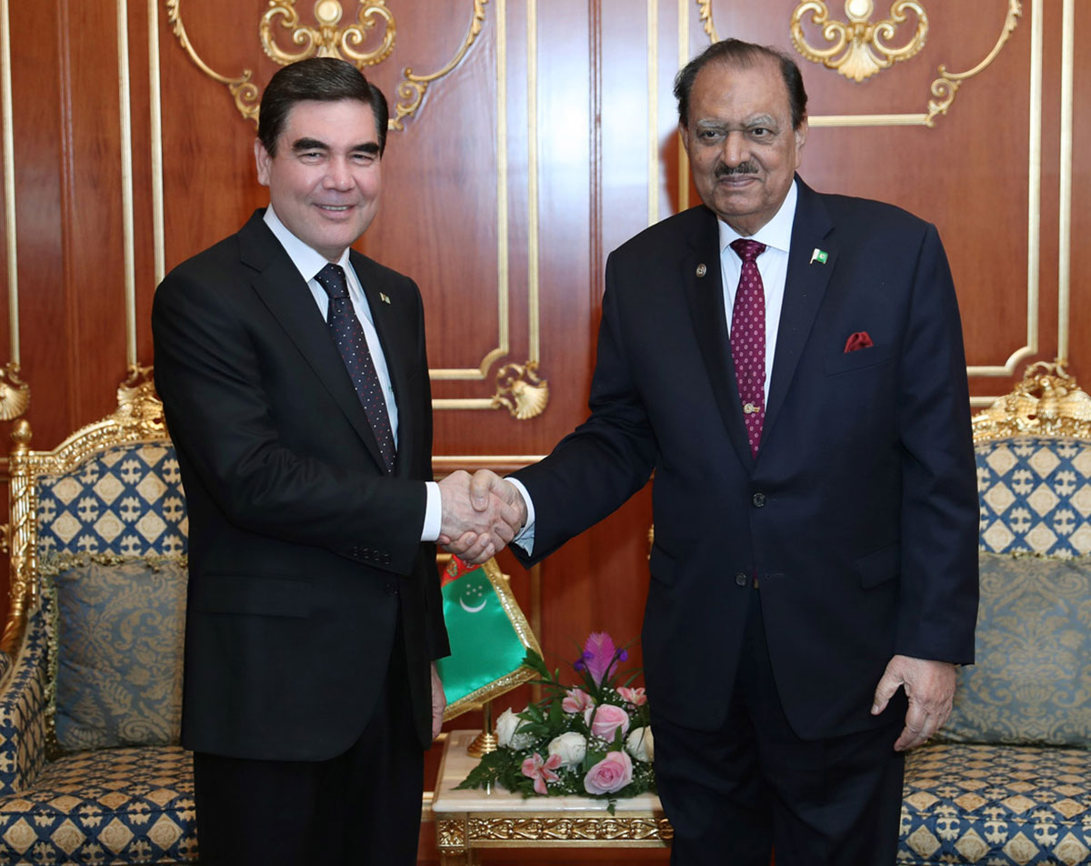During the visit to the capital of Tajikistan where he arrived for the participation in forum “Water for Sustainable Development”, President Gurbanguly Berdimuhamedov had a meeting with President of the Islamic Republic of Pakistan Mamnun Hussein. During the conversation, the sides gave high appraisal to the dynamics of the development of interstate dialog, which is based on the relations of friendship, historical, cultural and spiritual community of the nations. President Mamnun Hussein highlighted that Pakistan is interested in activation of the cooperation with Turkmenistan and supports creative initiatives of Turkmen leader aimed at the support of peace and sustainable development in Asian continent and in the world in general. In this context, the leader of Pakistan noted the importance of the initiatives of Gurbanguly Berdimuhamedov on creation of transcontinental energy and transport corridors. The President of Pakistan has also highlighted the appropriateness of the proposals of our country for joining of the efforts in solution of such aspects of ecological range of issues as protection and rehabilitation of water and other natural resources, combating the desertification and soil degradation, prevention and minimization of natural and anthropogenic catastrophes. Having expressed the gratitude for good words, President Gurbanguly Berdimuhamedov stated with delight the productiveness of the strategic partnership with Pakistan, which is successfully developed both in bilateral and multilateral levels. During the conversation, the sides exchanged the opinions on the key aspects of intensification of the cooperation, especially in fuel and energy, transport and communication spheres. In this context, the leaders on Turkmenistan and Pakistan expressed mutual interest in realization of the TAPI project and construction of TAP power and fibre optic line. The sides also spoke for the expansion of humanitarian cooperation. In the end of the meeting, Presidents Gurbanguly Berdimuhamedov and Mamnun Hussein confirmed the commitment of Turkmenistan and Pakistan to the course directed to the diversification of multiformat cooperation for the interests of the nations of two countries.