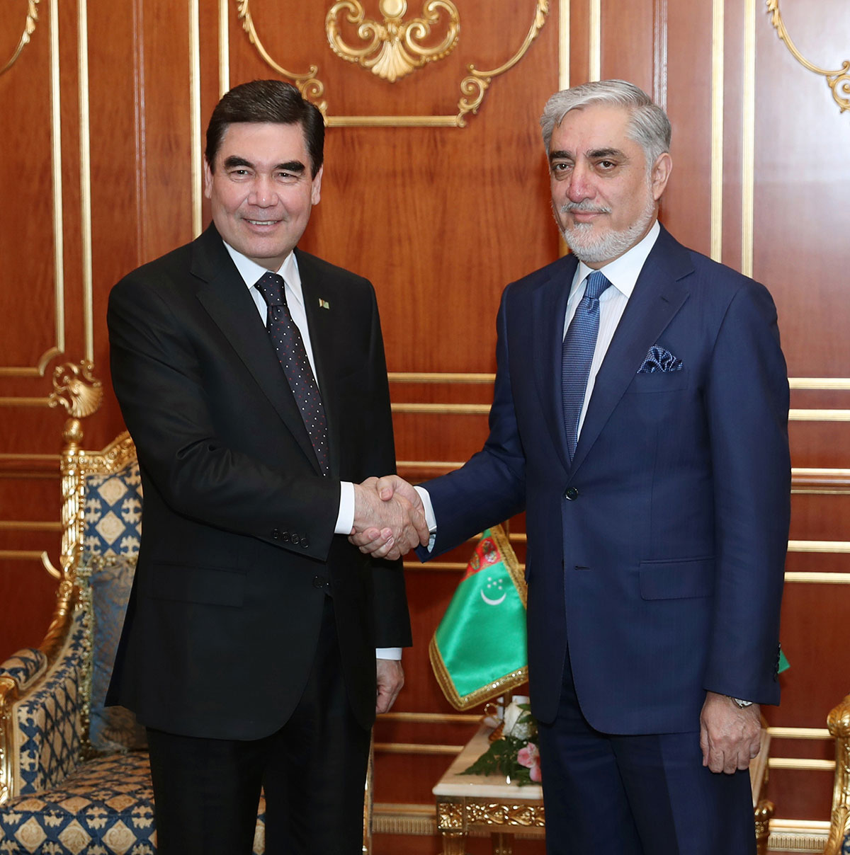 President Gurbanguly Berdimuhamedov, who arrived in Dushanbe for participation in high-level conference “Water for Sustainable Development”, had a meeting with the Head of Executive Power of the Islamic Republic of Afghanistan Abdulla Abdulla. Having expressed the gratitude for the opportunity of personal meeting, high-rank representative of the Islamic Republic of Afghanistan conveyed the greetings of President of Afghanistan Ashraf Ghani to the Head of Turkmen State. Having expressed the gratitude for good words and addressed return greetings to his Afghan colleague, President Gurbanguly Berdimuhamedov confirmed the commitment of Turkmenistan to traditionally friendly constructive dialog with Afghanistan. Speaking of the agenda of current forum, the Head of Executive Power Abdulla Abdulla has mentioned the appropriateness of international initiatives of President Gurbanguly Berdimuhamedov aimed at the creation of reliable base for stable peace in the third millennium. It was highlighted that constructive proposals of independent neutral Turkmenistan on integrated approach to the solution of ecological problems find all-around support of the world community. Provision of peace, stability and sustainable development in regional and global levels are strategic goals of Turkmenistan and Afghanistan, for achievement of which the countries actively cooperate under the United Nations, Non-Alignment Movement, Organization of Islamic Cooperation, Economic Cooperation Organization. In this regard, Turkmen leader stated the coincidence of the visions of the sides on such actual directions of international politics as energy safety and transport cooperation. Gurbanguly Berdimuhamedov highlighted that Turkmenistan and Afghanistan acts as the supporter of peaceful and diplomatic solutions of all arising problems. Partnership in fuel and energy sphere, especially the realization of Turkmenistan – Afghanistan – Pakistan – India gas pipeline project, which commissioning would make positive effect on social and economic development of the region, was one of the subjects of the meeting. The projects of transport corridors and large electrical energy infrastructure seem to be perspective as well. In this context, Turkmen leader highlighted that Rabatkashan – Kalaynau power line is to be put into operation in few days. It will allow expanding the supplies of the electricity to the neighbouring country. In this regard, Abdulla Abdulla expressed the gratitude to the Head of the State and to Turkmen people for the support in stable development of Afghanistan.