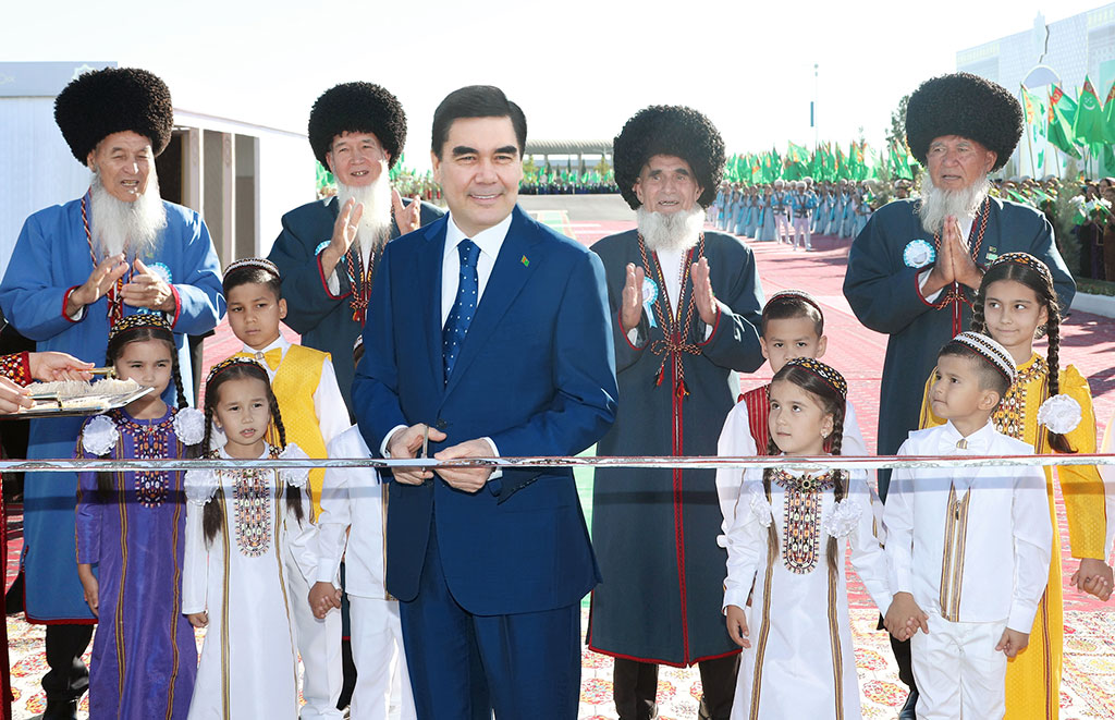 President Gurbanguly Berdimuhamedov, who arrived in Lebap Velayat on a working visit, attended the ceremony of laying the foundation of a residential area and the opening ceremony of a microdistrict, erected in the administrative centre of the eastern region of the country. In the morning, the President of Turkmenistan arrived to the venue for construction of the new housing estate, where the Chairperson of the Mejlis, cabinet ministers, heads of various departments, Lebap Velayat Khyakim, the elders and youth greeted the Turkmen leader. The representatives of the younger generation of the country – a boy and a girl greeted the Turkmen leader and wished him good health and every success in his versatile activity. At request of children, the President signed the memorial letter to the descendants on the occasion of the remarkable event in Lebap velayat. The letter was put into a special capsule. Then the Turkmen leader launched the construction, laying the foundation of the new housing estate. 17 four-storeyed 32-apartment houses as well as 170 two-storeyed cottages with land plots and other facilities will be built along the highway leading to the Turkmenabat International Airport. The new three-room apartments will occupy the area of 101 and 119 square metres, and five-room cottages – 250 square metres. A secondary school designed for 600 students, a trading centre and a consumer services centre, supplied with the advanced equipment, will be built on the territory of the housing estate. Then the President of Turkmenistan headed to the venue for the new residential complex opening ceremony. The complex was erected along the highway leading to the Turkmenabat International Airport. The complex includes 22 four-storeyed apartment houses with improved conditions. There are 40 apartments in each house. The houses designed for big and small families – two-, three- and four-room apartments were built by the Ministry of Industry of Turkmenistan. The state construction organisations in Lebap Velayat significantly contributed to the implementation of this ambitious social project. There are large spacious bright rooms with high ceilings and well-equipped kitchens in the new apartments, where all necessary conditions are created. The houses are built in a modern architectural style using the elements of the national decor. Over a thousand of families will get new apartments in the complex. The new housing estate in Turkmenabat is provided with all necessary social facilities. There are well-equipped children's and playing grounds on the improved territory of the complex. All those present at the opening ceremony greeted the President of Turkmenistan. In the solemn atmosphere, the Turkmen leader cut the symbolic ribbon, opening the new complex under the storm of applause of the ceremony participants. Singers, musicians and folklore groups arranged the bright performances near each building. The guests to the festive celebrations were offered with traditional treats, as well as tea with medicinal herbs. Young painters were trying to capture the unforgettable moments of the festival in their drawings. Then, on the invitation of a family, President Gurbanguly Berdimuhamedov visited happy new settlers, getting them know better, asking about their work and life. The head of the family is a teacher at S.Seydi Turkmen State Pedagogical Institute, his wife is a schoolteacher. “Teachers and senior mentors have always enjoyed great respect among Turkmens, as throughout the history, our people has attached special importance to the education of generations”, the President noted. This noble tradition continues at present. The family has five sons and one daughter. The youngest of them - twins - told about their work, their profession. The Turkmen leader noted that it was pleasant to see such a friendly and strong family that follows the traditional customs, respects the elders and takes care for the youngers. The Turkmen leader asked the owners' about the opinion on the new apartment and its arrangement. In response, the new settlers expressed deep gratitude to the President for the concern about the people of Turkmenistan and the opportunities provided to them to get such a wonderful apartments, where everything meets the modern standards of quality and comfort. The President underlined that the creation of worthy living conditions for the Turkmen people ranked among the matters of the utmost importance, emphasizing that the state would continue taking care of the people’s well-being and further improvement of the social and living conditions. Congratulating the new settlers on the housewarming, President Gurbanguly Berdimuhamedov wished them a happy life in the new house, wellbeing, health and success. Once again congratulating all those present on the opening of the new housing estate and laying the foundation of the next stage of houses for Turkmenabat residents, the Turkmen leader wished the people of Turkmenabat success and left the venue, heading to the International airport of the Lebap Velayat administrative center.
