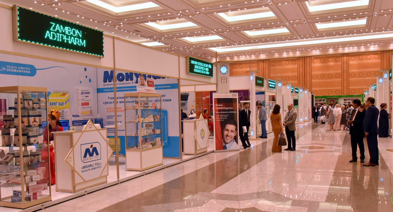 The Health-2018 International Exhibition has opened in the Turkmen capital. A thematic scientific conference and a meeting on the Regional Nutrition Partnership Platform for Central Asia and Caucasus are also being held as part of the exhibition. The medical forum, traditionally held in our country, is co-organized by the Ministry of Health and Medical Industry of Turkmenistan and the Chamber of Commerce and Industry. Among those in attendance at the opening ceremony were representatives of the diplomatic missions accredited to Turkmenistan, medical research centers, the Academy of Sciences, some ministries and agencies, public organizations, education institutions, and the media. Timed to coincide with Medical Workers’ Day, the Exhibition has become an essential part of the process of improving the national health system, and offers specialists the opportunity to become aware of advanced methods and services in the medical industry. Professionals, who specialize in different branches of medicine, are taking part in this year’s International Exhibition. Among the exponents are 240 foreign companies, producing pharmaceuticals, medical equipment and consumables, and delivering a wide spectrum of medical services, including companies from Germany, the USA, Turkey, India, EU countries, and others. The exposition traditionally opens with a stand of the Ministry of Health and Medical Industry of Turkmenistan that features copies of international certificates our country has been awarded in recognition of the successful eradication of several infectious diseases. The Turkmen doctors’ experience in this field has been recommended for the adoption in countries of the WHO European Region. An official launch presentation of the tenth volume of the President-authored Encyclopedia of Medicinal Plants of Turkmenistan was held during the exhibition. Speakers at the event have highlighted that the creation of the many-volume encyclopedia on plants native to our country is an important step towards advancing both national pharmaceutical science and global herbal medicine. The Red Crescent National Society of Turkmenistan, a non-profit organization and a member of the International Federation of Red Cross and Red Crescent Societies that renders assistance to government bodies in humanitarian activities, also has display stands at the exhibition. A health resort and spa treatment centers stand depicts health resorts in Bairamali, Berzengi, Mollakara, Archman, Yylysuv, Farab, and Dashoguz. The facilities and a range of services offered by each of them can today rival those of world’s best health resorts. The diverse natural landscape, mineral springs, and medicinal plants indigenous to Turkmenistan create essential prerequisites for developing the health resort industry and ecotourism. The exhibition showcases state-of-the-art diagnostic and laboratory equipment, newly-designed products, efficient consumables, herbal pharmaceuticals, furniture, hospital intercom systems, hygiene, healthcare and cosmetic products. On display are also products and services in the field of innovative technologies. Among the exhibitors are long-time partners of Turkmen health professionals, such as Hospitalia International GmbH, Bionorica CE, Siemens AG (Germany), World Medicine Limited (Great Britain), Ajanta Pharma (India), Gedeon Richter (Hungary), Askin and Co. (Austria), and many others. The International Scientific Conference focused on innovation proposals in the field of medical equipment and technologies, pharmaceutics, and advanced methods of treatment of various diseases. Its plenary session was held in a conference hall of the Chamber of Commerce and Industry.